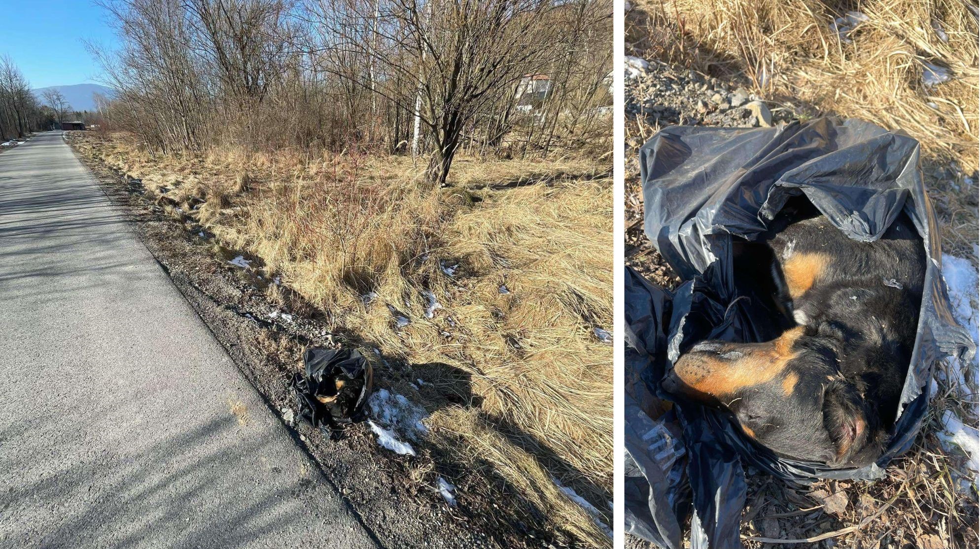Przerażające i mrożące krew w żyłach zdjęcia martwego psa opublikowano w internecie. Ciało czworonoga w foliowym worku znaleziono wczoraj tuż przy drodze gminnej w Dobrej.