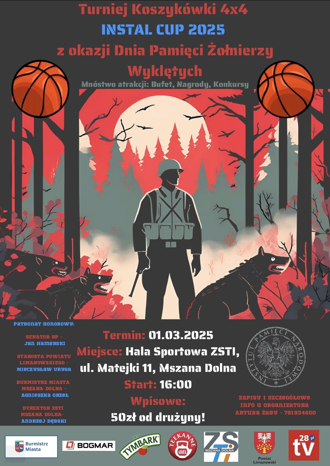 1 marca w Zespole Szkół Techniczno-Informatycznych w Mszanie Dolnej odbędzie się Otwarty Turniej Koszykówki 4×4 „Instal Cup” 2025 z okazji Dnia Pamięci Żołnierzy Wyklętych.