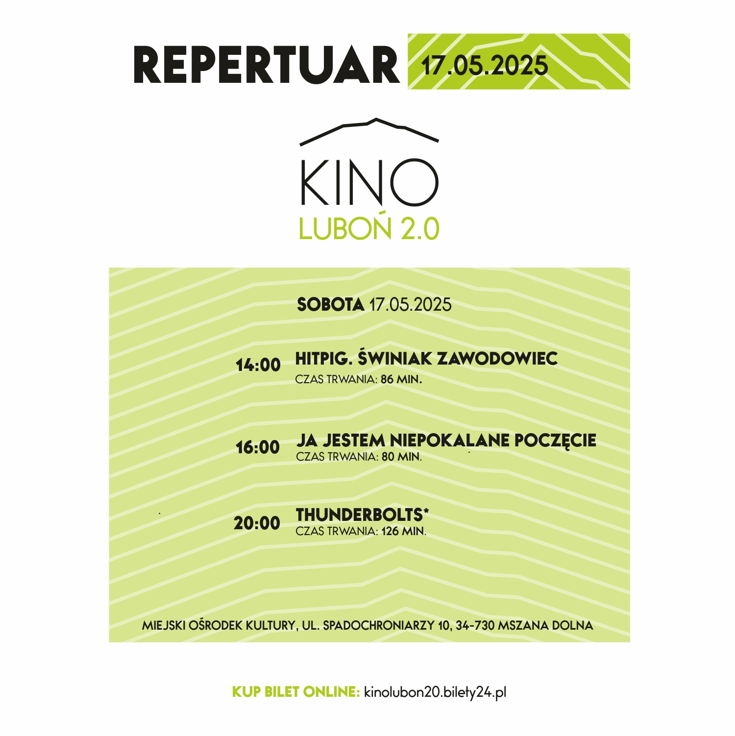 Kino „Luboń 2.0” w Mszanie Dolnej zaprasza na seanse 17 maja.źródło: MOK Mszana Dolna; oprac. MAGfot. MOK Mszana Dolna