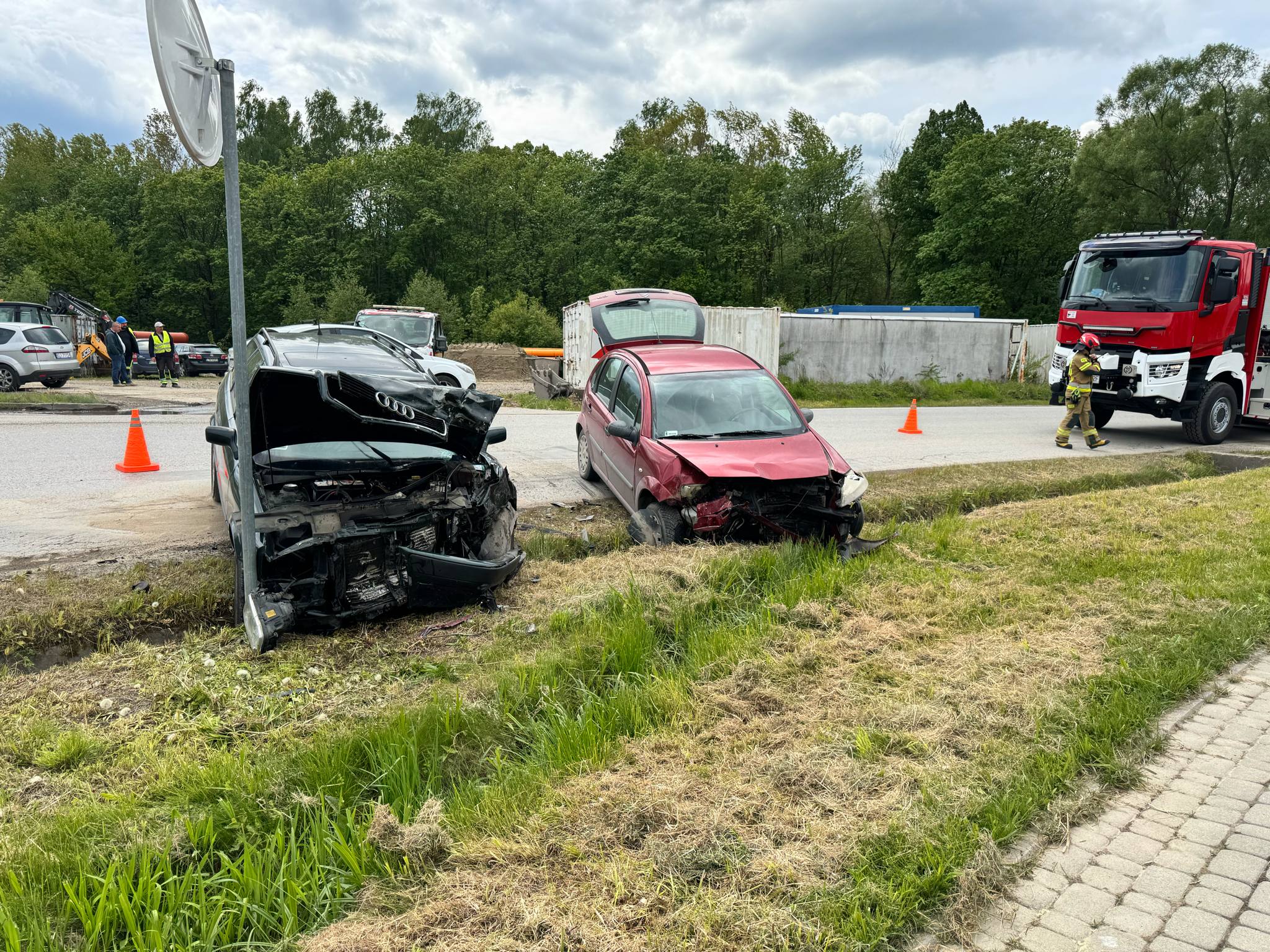 W związku z kolizją ruch samochodów przez pewien czas odbywał się wahadłowo. Na miejscu zdarzenia swoje czynności prowadzili również policjanci.