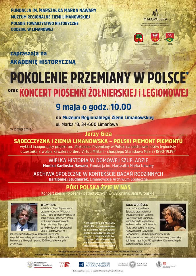 Muzeum Regionalne Ziemi Limanowskiej zaprasza na akademię historyczną „Pokolenie przemiany w Polsce” oraz koncert „Póki Polska żyje w nas”. Wydarzenie odbędzie się 9 maja o godz. 10.00.