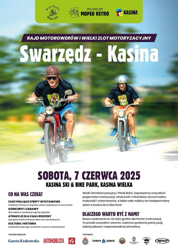 Akcja na Kołach: 16:30 Mini Rajd Motorowerów po malowniczych zakątkach Kasiny Wielkiej!