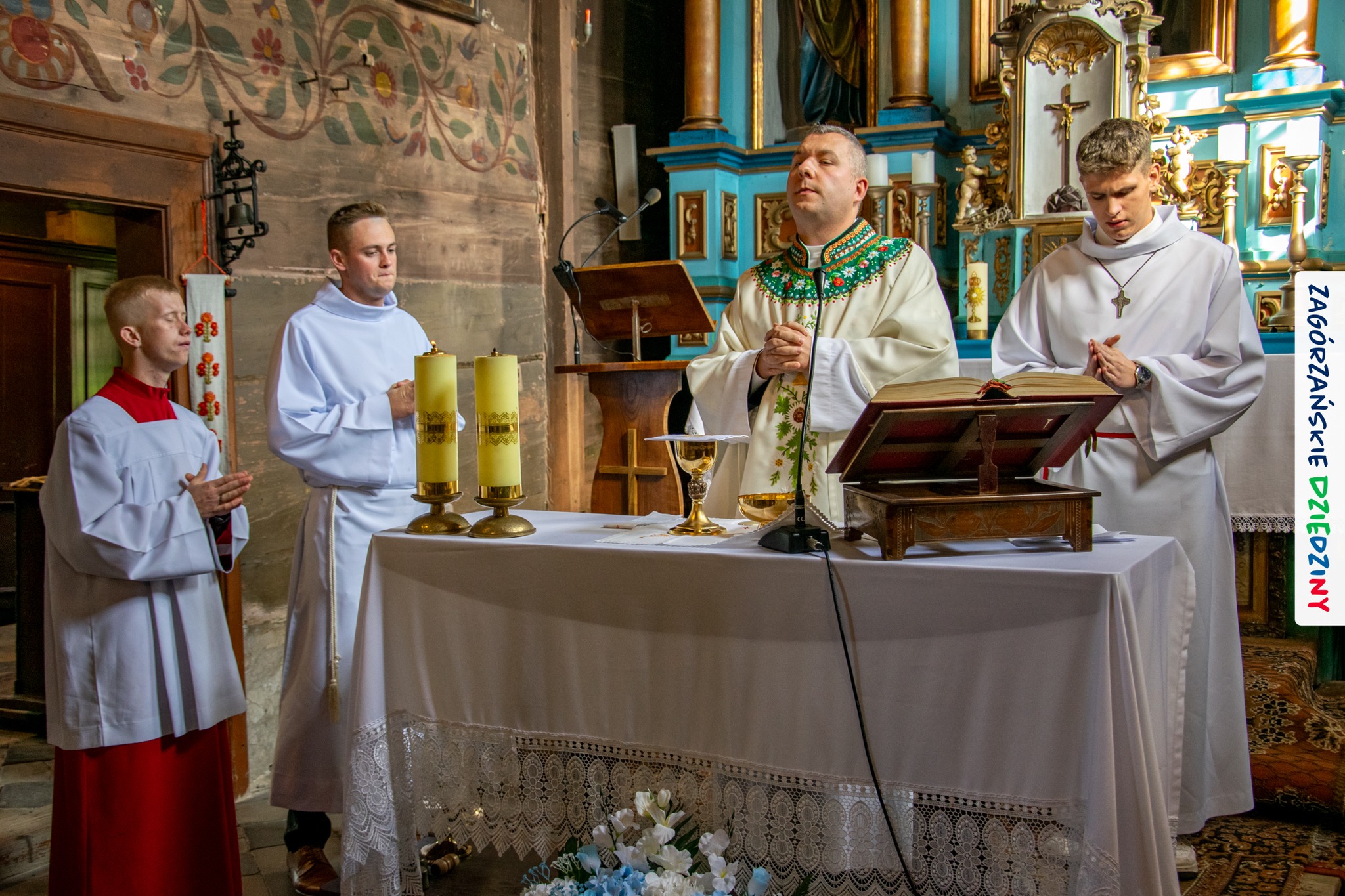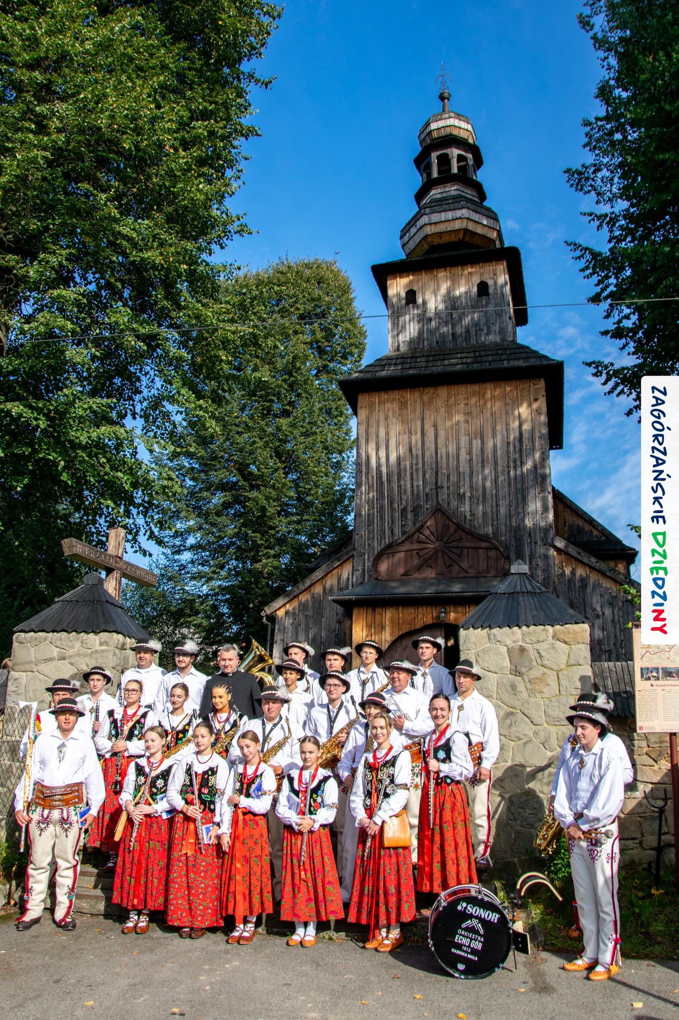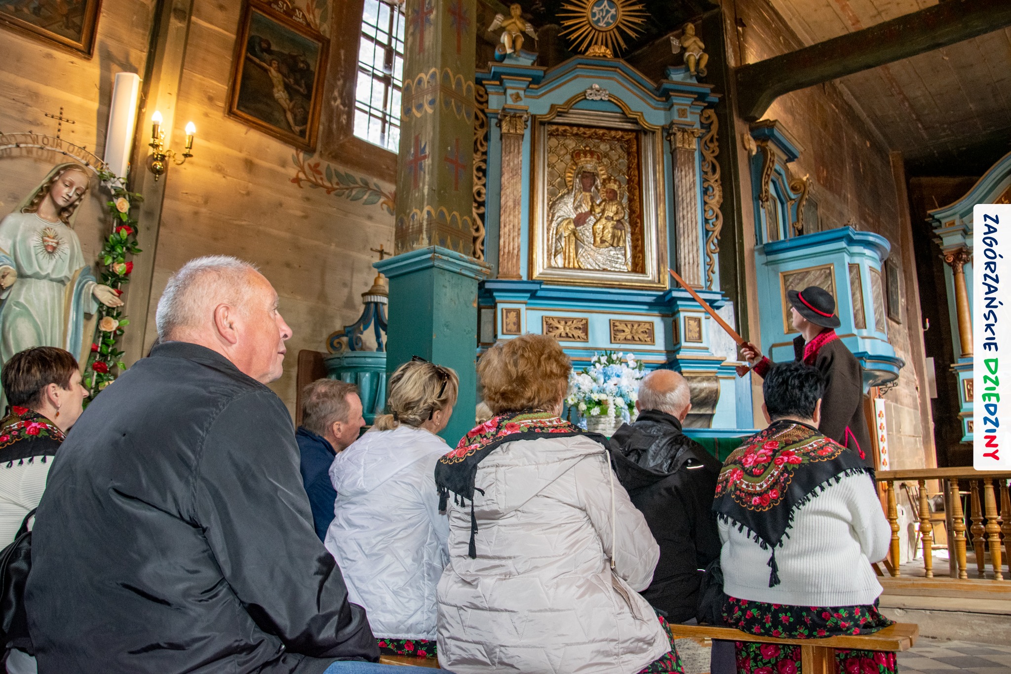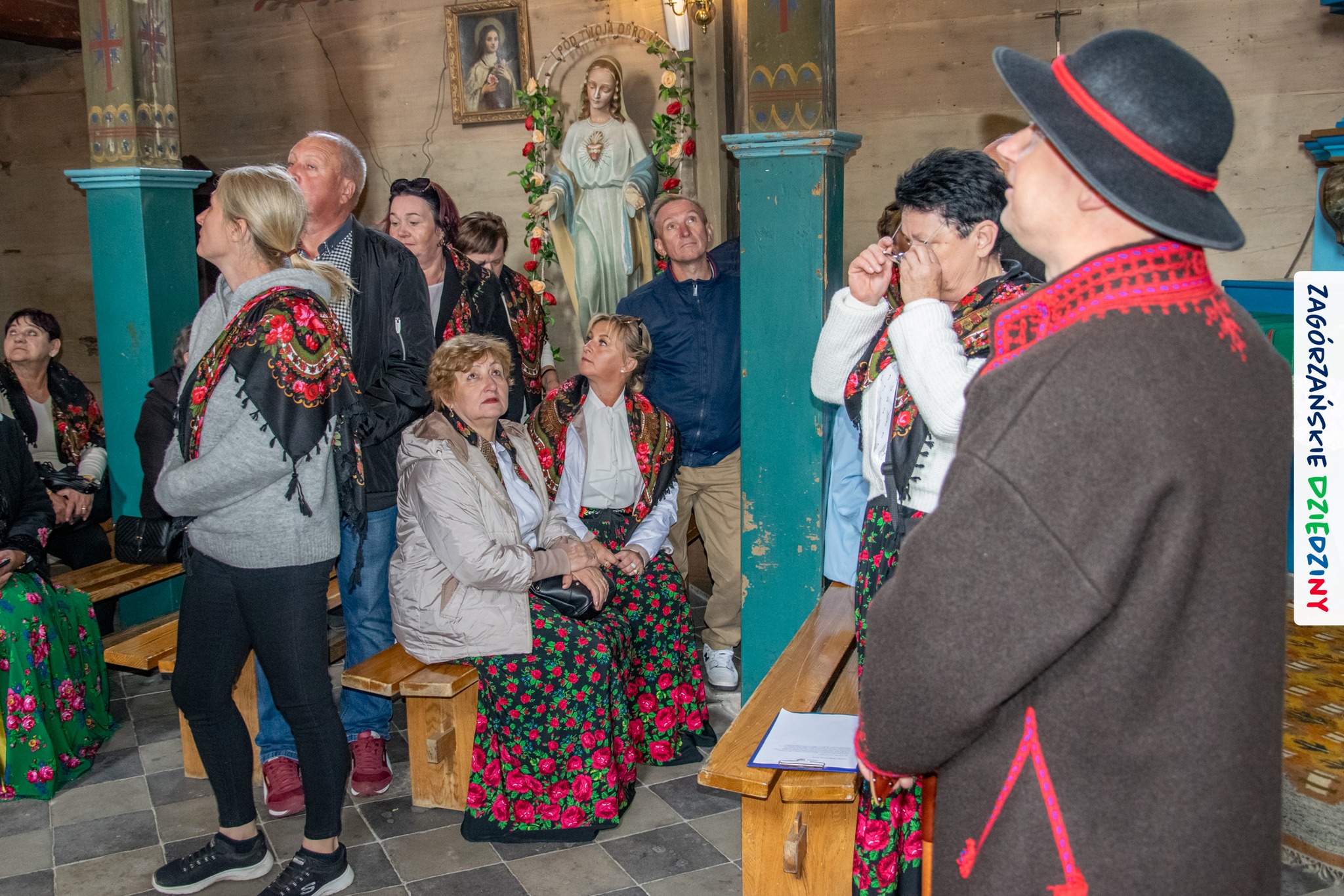 – Zagórzańską mszę św. poprzedziliśmy wysłuchaniem historii zabytkowego kościoła pw. św. Marii Magdaleny w Kasinie Wielkiej położonego na Szlaku Architektury Drewnianej w Małopolsce. Wszystko to za sprawą owych gości właśnie – przedstawicieli Koła Gospodyń Wiejskich w Budach Dłutowskich k/Łodzi – którzy tak zaplanowali swój pobyt w Zagórzańskich Dziedzinach, aby wziąć udział w tym szczególnym wydarzeniu. Po siedemnastowiecznej świątyni oprowadził ich paradnie ubrany Grzegorz Kubowicz. Jego niezwykłej opowieści mogli wysłuchać również wierni, którzy gromadzili się powoli na Eucharystię. Wszyscy z zapartym tchem chłonęli słowa Informatora, odkrywając na nowo szczegóły z wnętrza tak dobrze znanego im już kościółka. Ta niespodzianka spodobała się zwłaszcza mieszkańcom Kasiny Wielkiej, którym Grzegorz zwrócił uwagę na wiele szczegółów nawiązujących do regionu, czy to w polichromii, czy to w architekturze i stylu świątyni – informują kreatorzy marki Zagórzańskie Dziedziny.