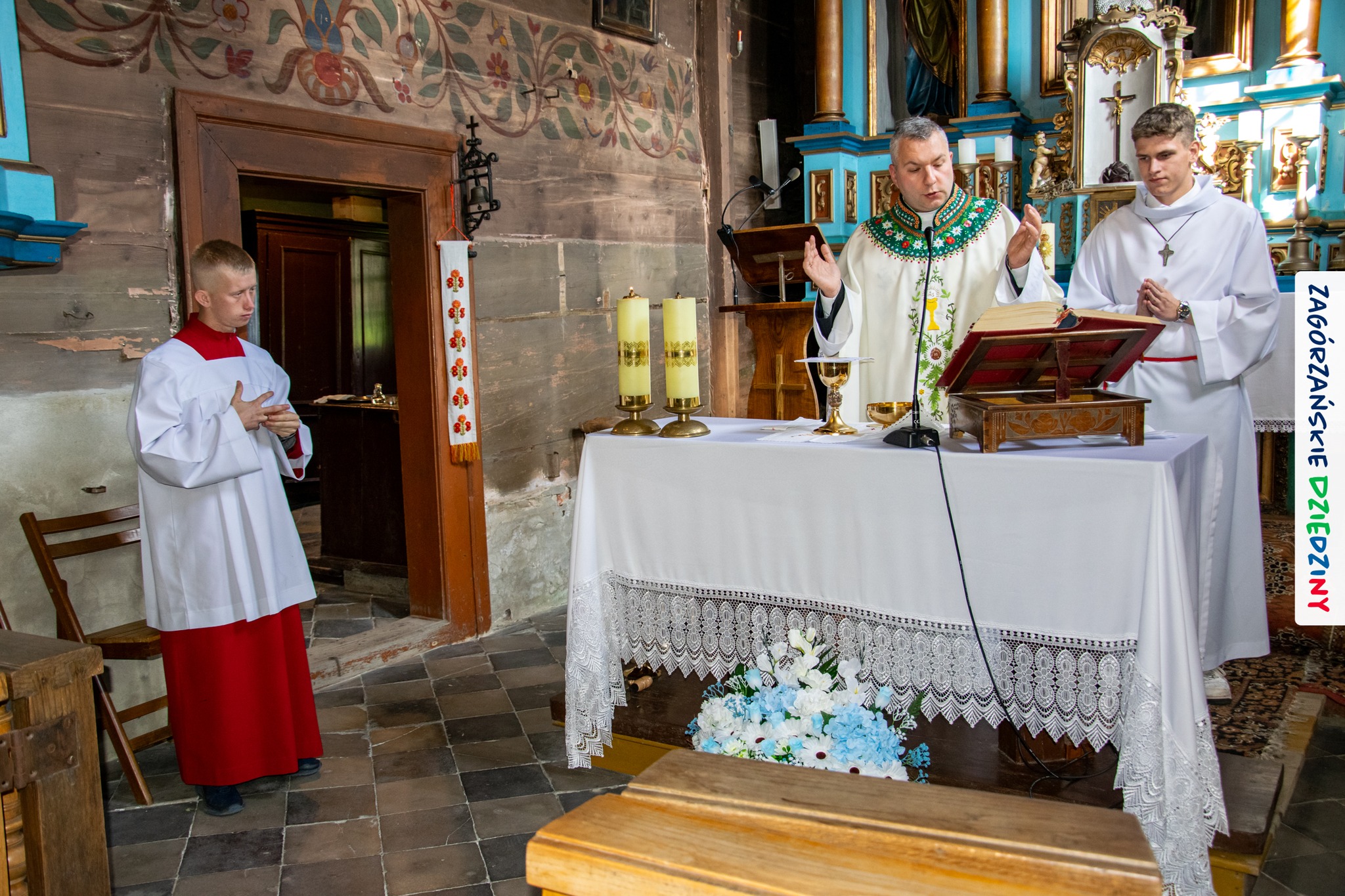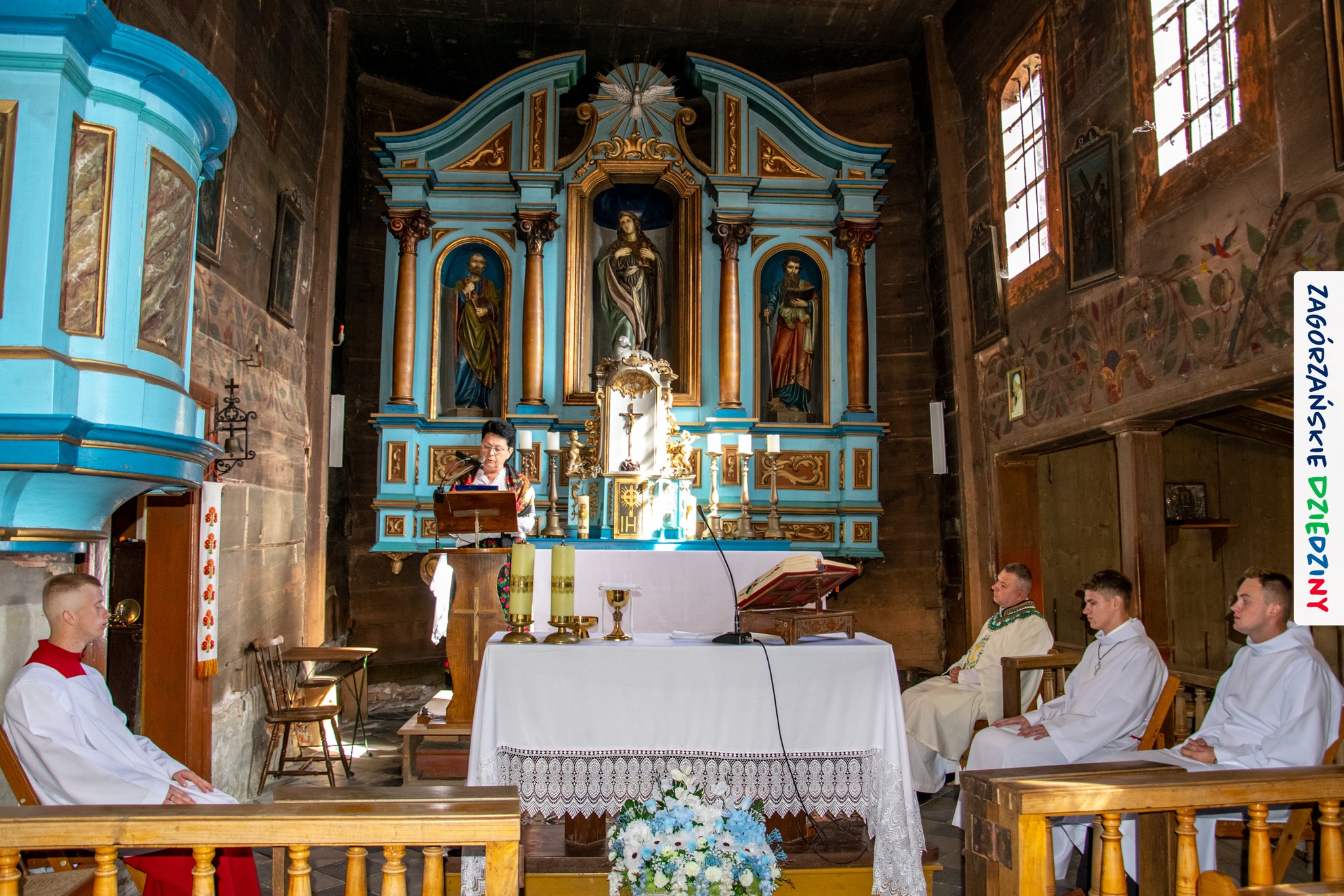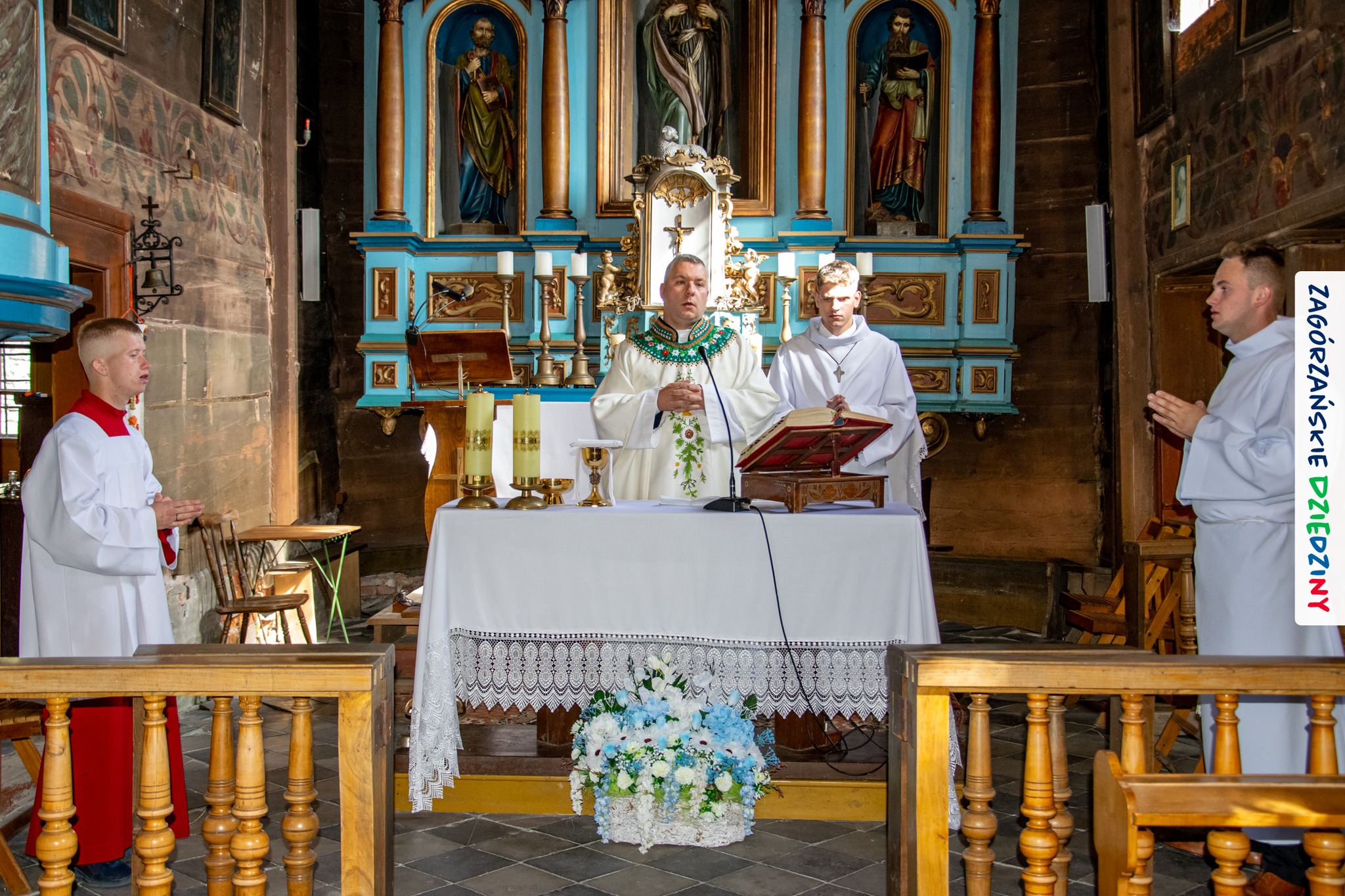 – Zagórzańską mszę św. poprzedziliśmy wysłuchaniem historii zabytkowego kościoła pw. św. Marii Magdaleny w Kasinie Wielkiej położonego na Szlaku Architektury Drewnianej w Małopolsce. Wszystko to za sprawą owych gości właśnie – przedstawicieli Koła Gospodyń Wiejskich w Budach Dłutowskich k/Łodzi – którzy tak zaplanowali swój pobyt w Zagórzańskich Dziedzinach, aby wziąć udział w tym szczególnym wydarzeniu. Po siedemnastowiecznej świątyni oprowadził ich paradnie ubrany Grzegorz Kubowicz. Jego niezwykłej opowieści mogli wysłuchać również wierni, którzy gromadzili się powoli na Eucharystię. Wszyscy z zapartym tchem chłonęli słowa Informatora, odkrywając na nowo szczegóły z wnętrza tak dobrze znanego im już kościółka. Ta niespodzianka spodobała się zwłaszcza mieszkańcom Kasiny Wielkiej, którym Grzegorz zwrócił uwagę na wiele szczegółów nawiązujących do regionu, czy to w polichromii, czy to w architekturze i stylu świątyni – informują kreatorzy marki Zagórzańskie Dziedziny.