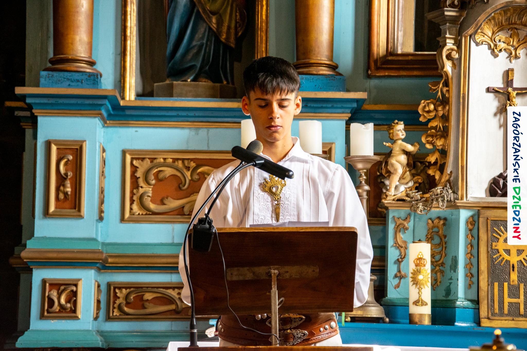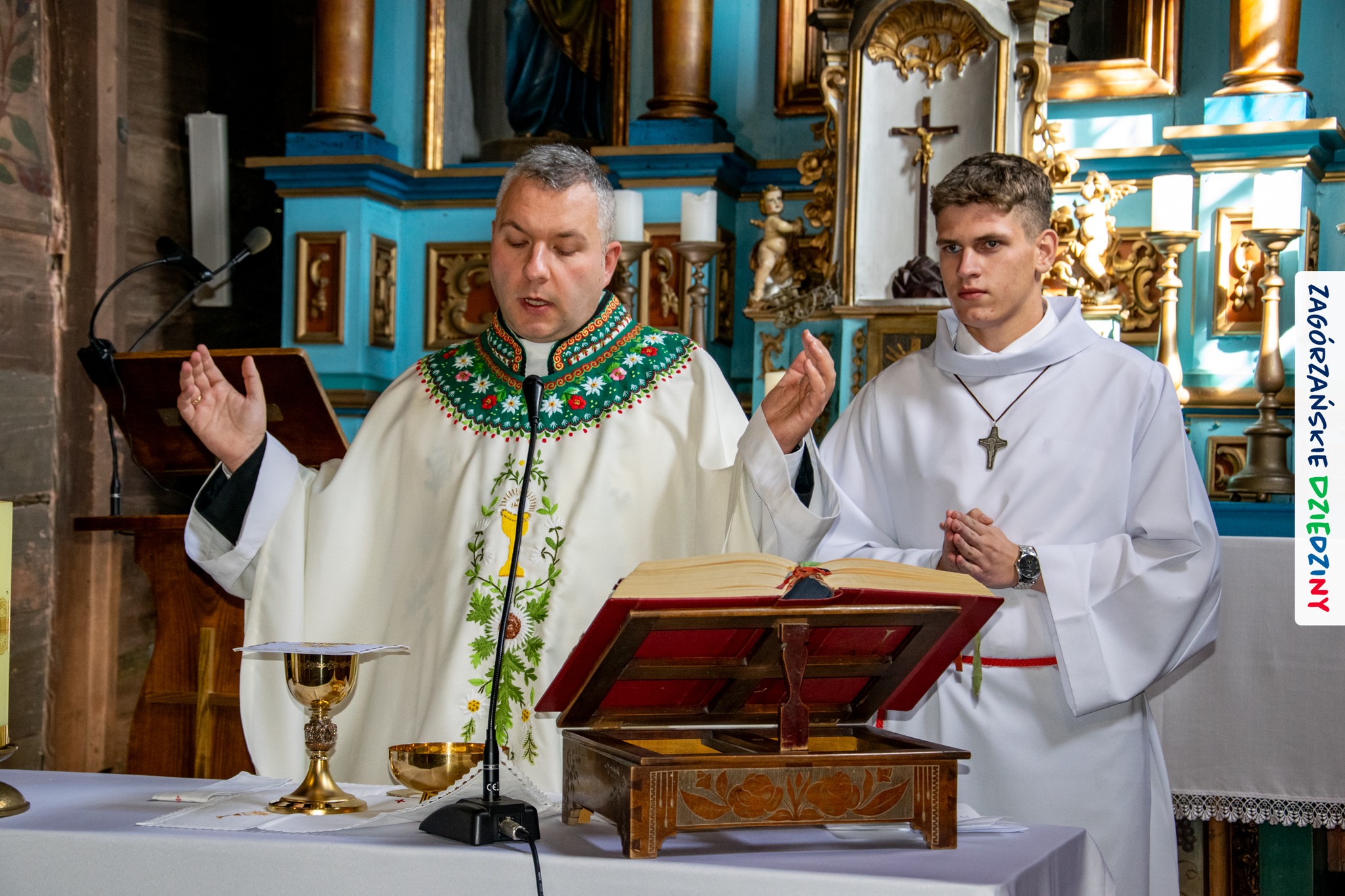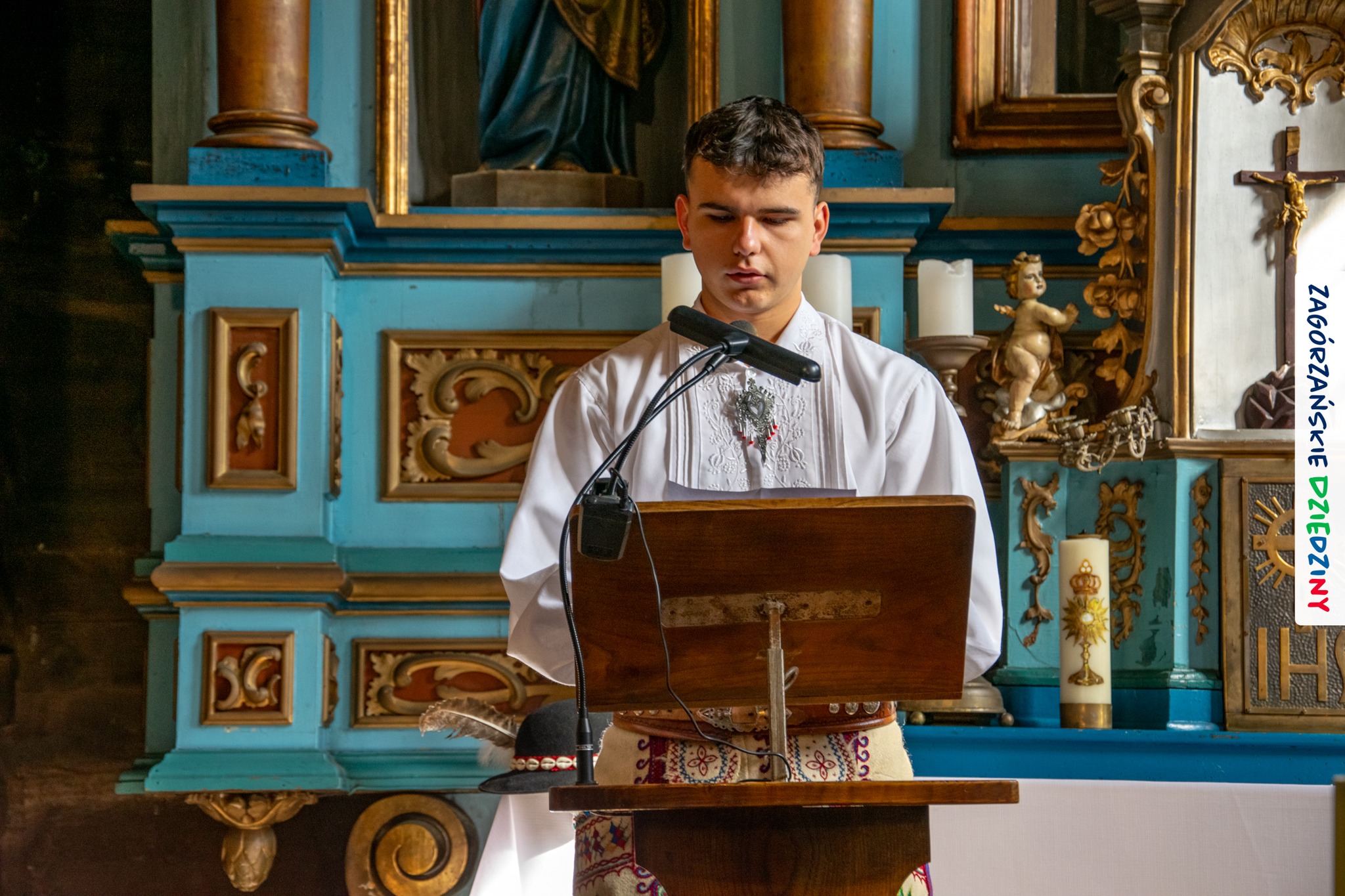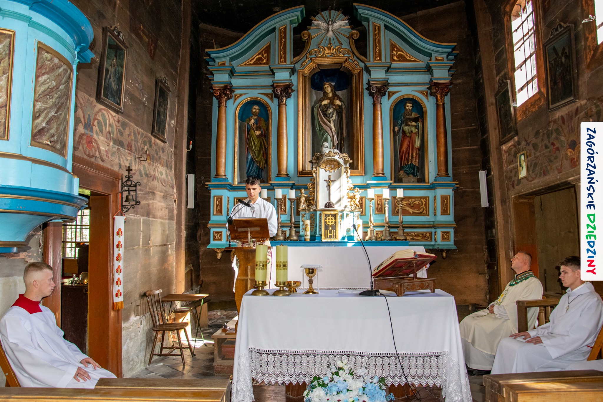 – Zagórzańską mszę św. poprzedziliśmy wysłuchaniem historii zabytkowego kościoła pw. św. Marii Magdaleny w Kasinie Wielkiej położonego na Szlaku Architektury Drewnianej w Małopolsce. Wszystko to za sprawą owych gości właśnie – przedstawicieli Koła Gospodyń Wiejskich w Budach Dłutowskich k/Łodzi – którzy tak zaplanowali swój pobyt w Zagórzańskich Dziedzinach, aby wziąć udział w tym szczególnym wydarzeniu. Po siedemnastowiecznej świątyni oprowadził ich paradnie ubrany Grzegorz Kubowicz. Jego niezwykłej opowieści mogli wysłuchać również wierni, którzy gromadzili się powoli na Eucharystię. Wszyscy z zapartym tchem chłonęli słowa Informatora, odkrywając na nowo szczegóły z wnętrza tak dobrze znanego im już kościółka. Ta niespodzianka spodobała się zwłaszcza mieszkańcom Kasiny Wielkiej, którym Grzegorz zwrócił uwagę na wiele szczegółów nawiązujących do regionu, czy to w polichromii, czy to w architekturze i stylu świątyni – informują kreatorzy marki Zagórzańskie Dziedziny.