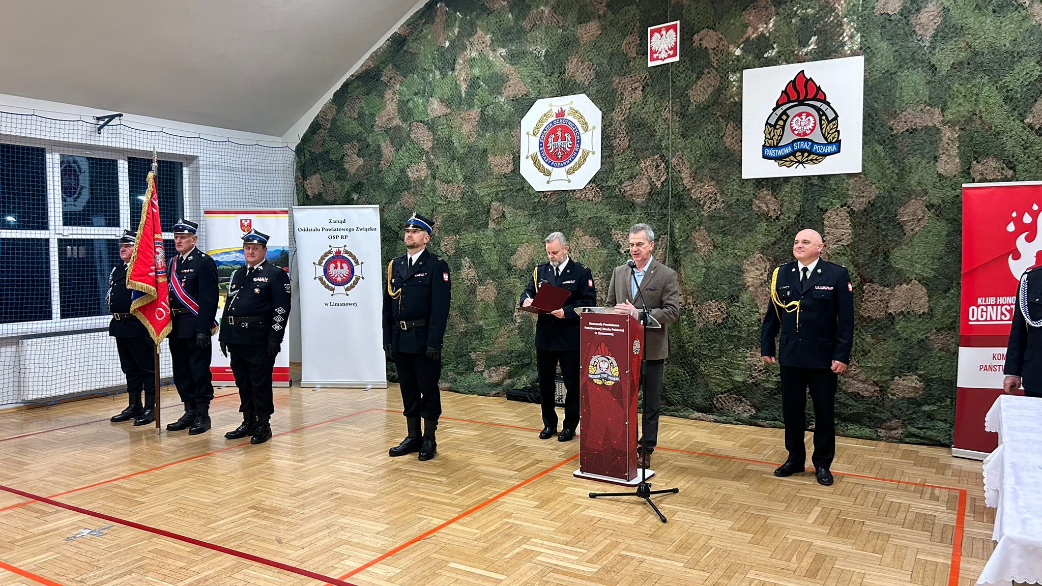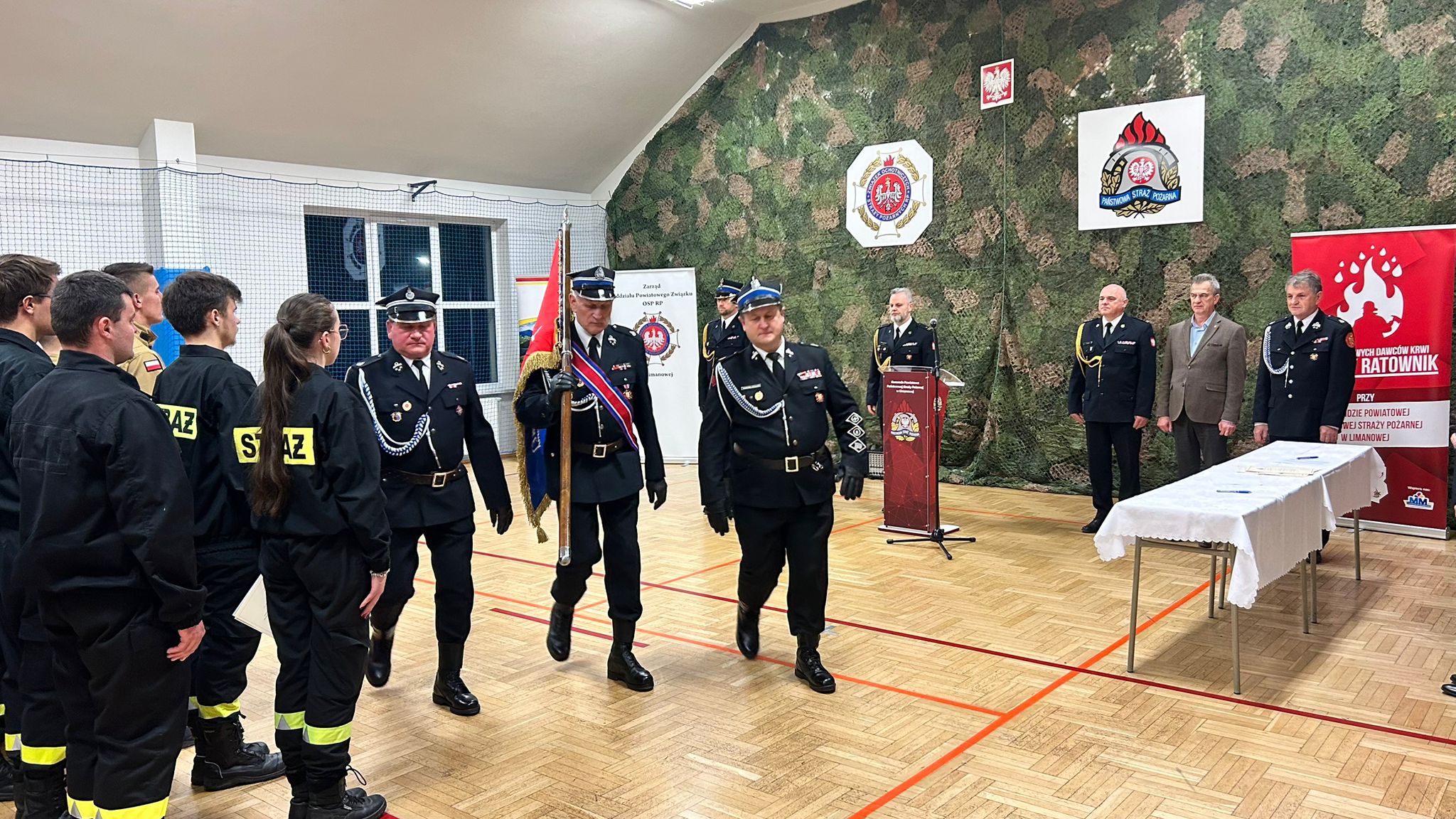 Nowi druhowie złożyli ślubowanie na sztandar Zarządu Oddziału Powiatowego Związku Ochotniczych Straży Pożarnych w Limanowej. Przyjął je prezes Zarządu OP ZOSP RP – st. bryg. w stanie spoczynku Grzegorz Janczy. W uroczystości uczestniczyli starosta Mieczysław Uryga, Komendant Powiatowy PSP w Limanowej – bryg. Tomasz Pawlik wraz z oficerami KP PSP, druh Kazimierz Czyrnek – Członek Honorowy Oddziału Powiatowego Związku OSP RP w Limanowej