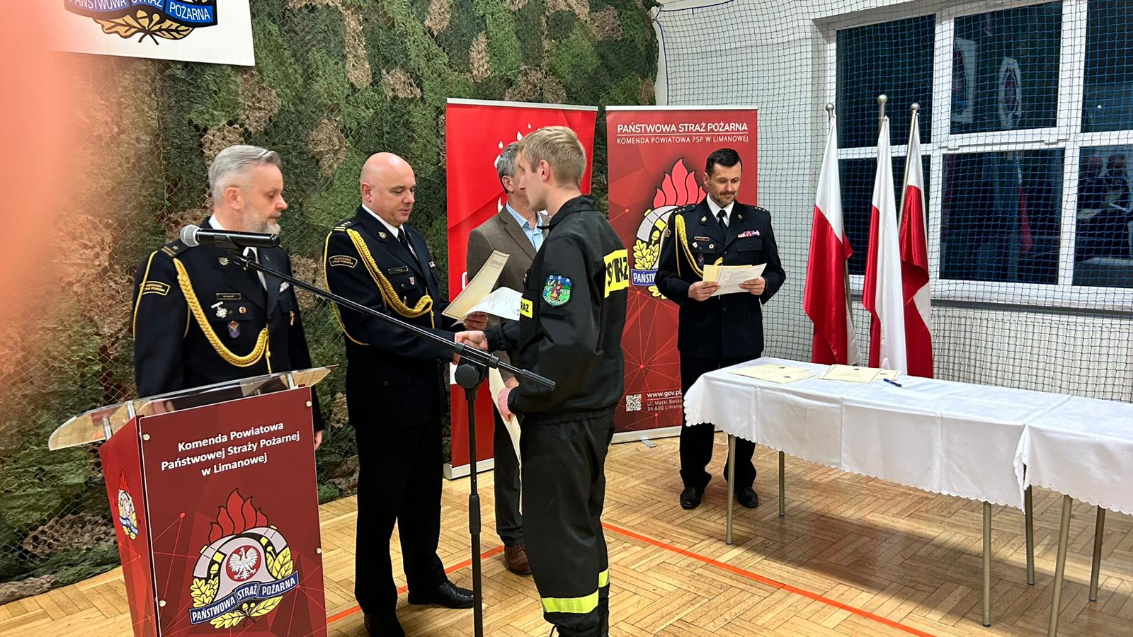 W Komendzie Powiatowej Państwowej Straży Pożanej w Limanowej odbyło się uroczyste zakończenie szkolenia podstawowego strażaków-ratowników OSP, uprawniającego do bezpośredniego udziału w działaniach ratowniczych.