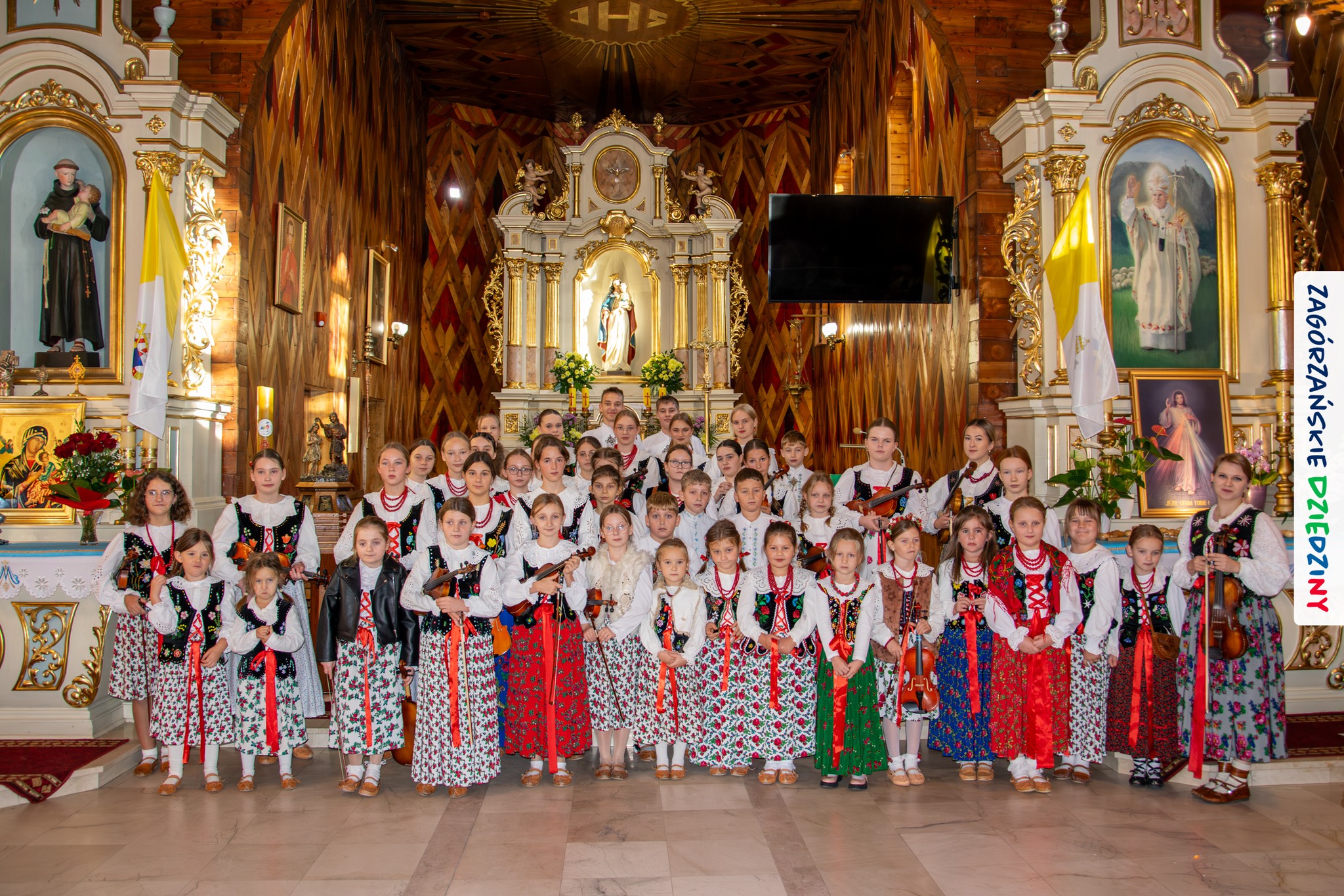 – W świątyni rozkoszowaliśmy się dźwiękami melodii wygrywanych na smykach, a za serce łapał widok dziecięcych gardeł wyśpiewujących nabożne pieśni… Celebrans, jak zwykle, w swojej homilii nawiązał do ogromnej wartości, jaką dla obecnych i przyszłych pokoleń mają te zagórzańskie msze św. „Wymiar duchowy i kulturowy świątyni nie stoją w sprzeczności do siebie, wręcz się uzupełniają i ubogacają to dzieło” – zaznaczył w nawiązaniu do uroczystości poświecenia kościoła własnego. Bardzo trafnie połączył odświętny ubiór, muzykę, gwarę, śpiew i tradycje Zagórzan w jedną opowieść o wartościach religijnych, patriotycznych i tożsamości ludzi mieszkających tam, gdzie Beskid Wyspowy wita się z Gorcami – czytamy w relacji opublikowanej przez Zagórzańskie Dziedziny.