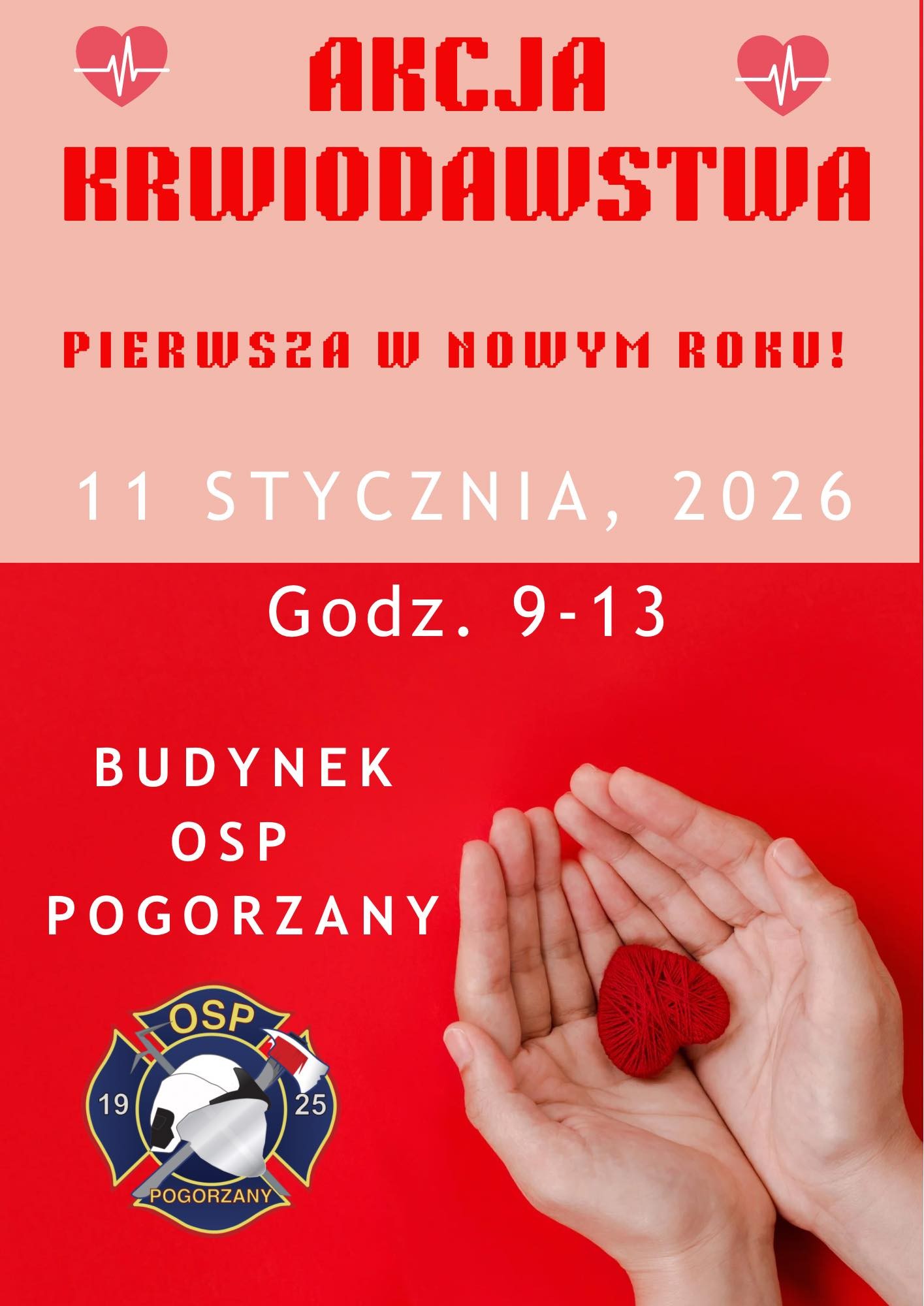 11 stycznia Ochotnicza Straż Pożarna w Pogorzanach organizuje pierwszą w tym roku akcję krwiodawstwa. Krew będzie można oddać od godz. 9.00 do godz. 13.00.