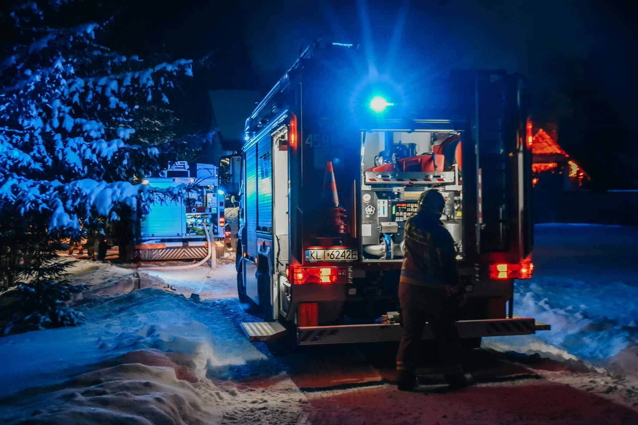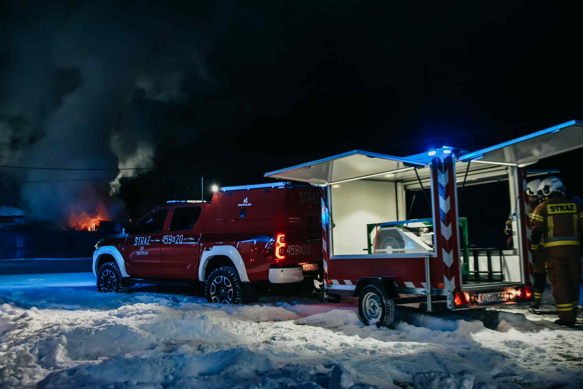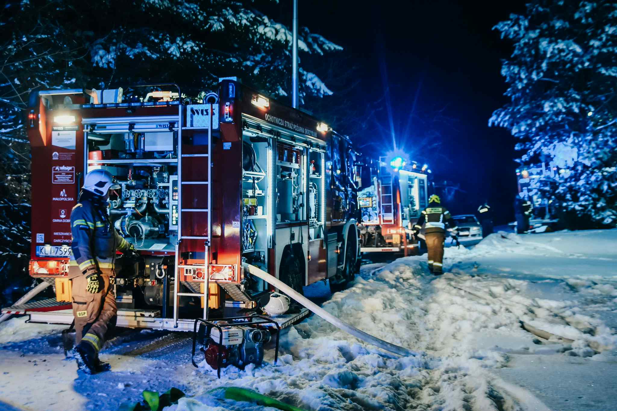 W akcji uczestniczyło 7 samochodów strażackich oraz przyczepka do nabijania butli powietrzem do aparatów oddechowych, które strażacy używali podczas działań. Łącznie podczas gaszenia pożaru pracowało 35 strażaków z jednostki PSP w Limanowej (Posterunku Czasowego PSP w Mszanie Dolnej) oraz jednostki OSP z Kasiny Wielkiej, Mszany Dolnej, Mszany Górnej i druhów z OSP w Skrzydlnej.