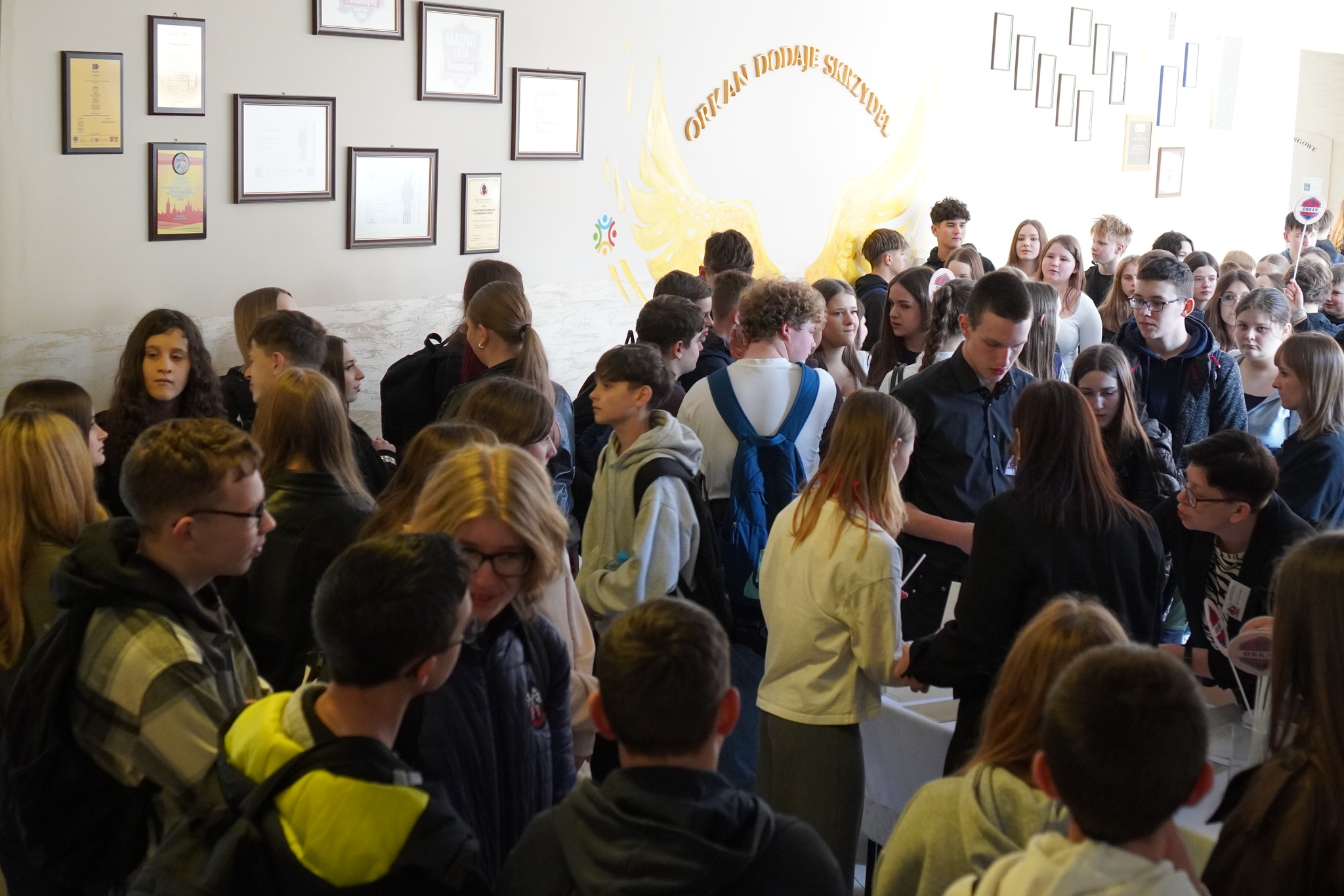 – Ósmoklasiści mogli zajrzeć do sal, wziąć udział w krótkich lekcjach pokazowych i przekonać się, że nauka w naszej szkole potrafi być naprawdę ciekawa, a czasem nawet zaskakująco zabawna. Podczas zajęć matematycznych uczniowie próbowali odpowiedzieć na pytanie: „Jak przechytrzyć kota?” oraz zastanawiali się, ile zwierząt żyje w lesie, wykorzystując przy tym sprytne matematyczne sposoby liczenia. Na biologii odkrywali słodki świat enzymów i dowiedzieli się, jak naukowcy badają DNA karaczana. Nie zabrakło także eksperymentów. Na fizyce poznawano różne fizyczne rozmaitości, a na chemii sprawdzano, jak nauka pomaga stworzyć… domowe SPA. Na geografii odbyła się „Geo – gra o wiedzę”, która szybko zamieniła się w emocjonujący quiz. Humanistyczna część dnia również pełna była nauki i zabawy. Na języku polskim uczestnicy odwiedzili „Poetyckie laboratorium języka Pokolenia Z” oraz szukali własnych interpretacji tekstów poetyckich na zajęciach „W poszukiwaniu poetyckiego PSA”. Z kolei na języku angielskim okazało się, że Pictures talk, a jak wiadomo – practice makes perfect. Nasi humaniści — szkolni olimpijczycy, artyści z ASKI, dziennikarze redakcji „C.D.N.” oraz członkowie Samorządu Uczniowskiego — zabrali gości w niezwykłą podróż po orkanowskim świecie. Opowiedzieli o profilach kształcenia, codziennym życiu szkoły, jej energii i tradycji, a także o przestrzeni, w której można rozwijać pasje, talenty i odważnie realizować własne marzenia. Dodatkową atrakcją był pokaz nowoczesnych technologii przygotowany przez studentów Akademii Górniczo-Hutniczej, podczas którego ósmoklasiści mogli zobaczyć m.in. kamery termowizyjne, roboty oraz inne nowinki technologiczne wykorzystywane we współczesnej nauce. Nie zabrakło też ruchu i dobrej zabawy podczas „Festivalu Podróży – Orkantour” na lekcji wychowania fizycznego. Na zakończenie uczniowie obejrzeli krótką prezentację o szkole – relacjonuje limanowskie liceum.