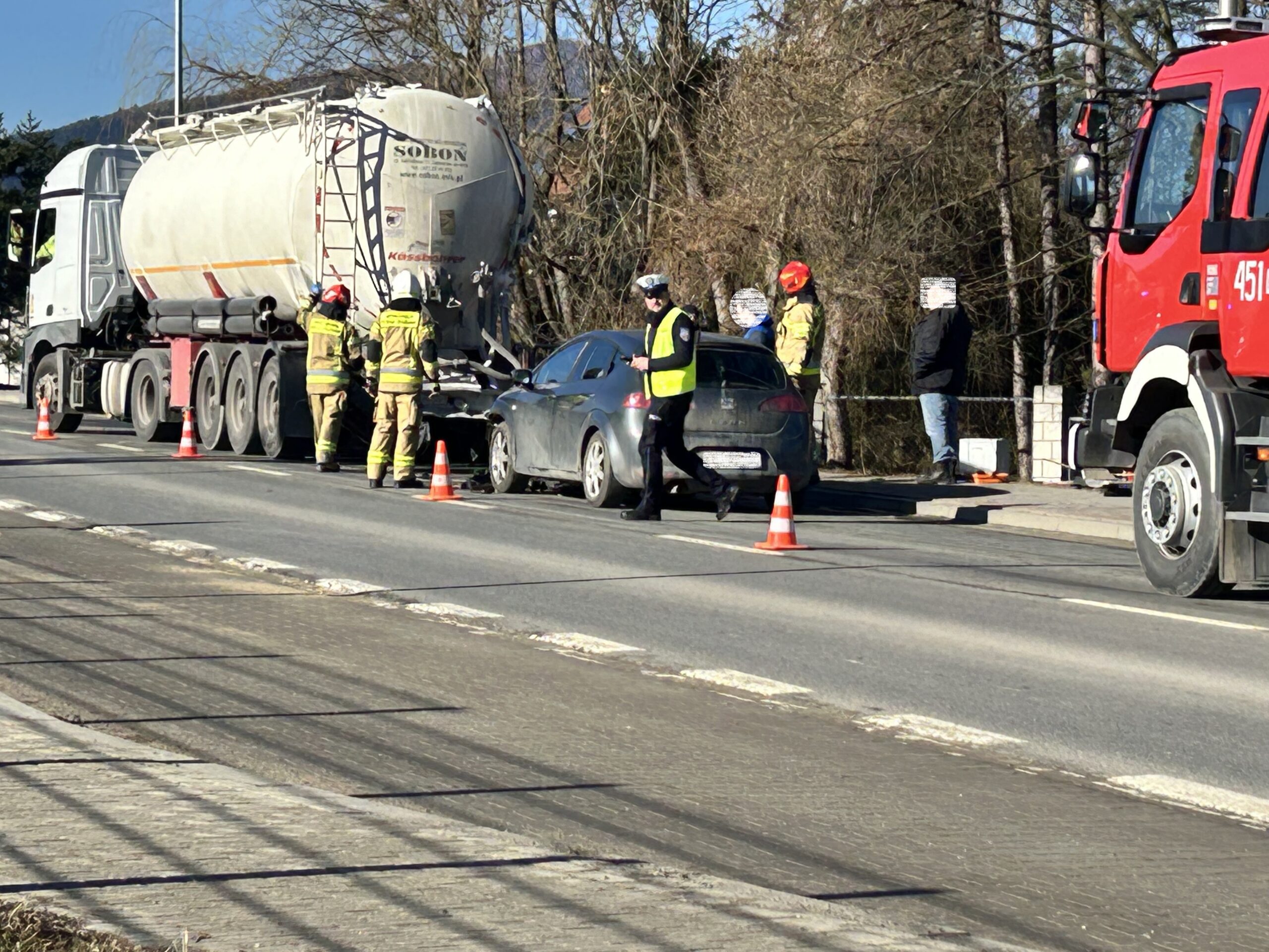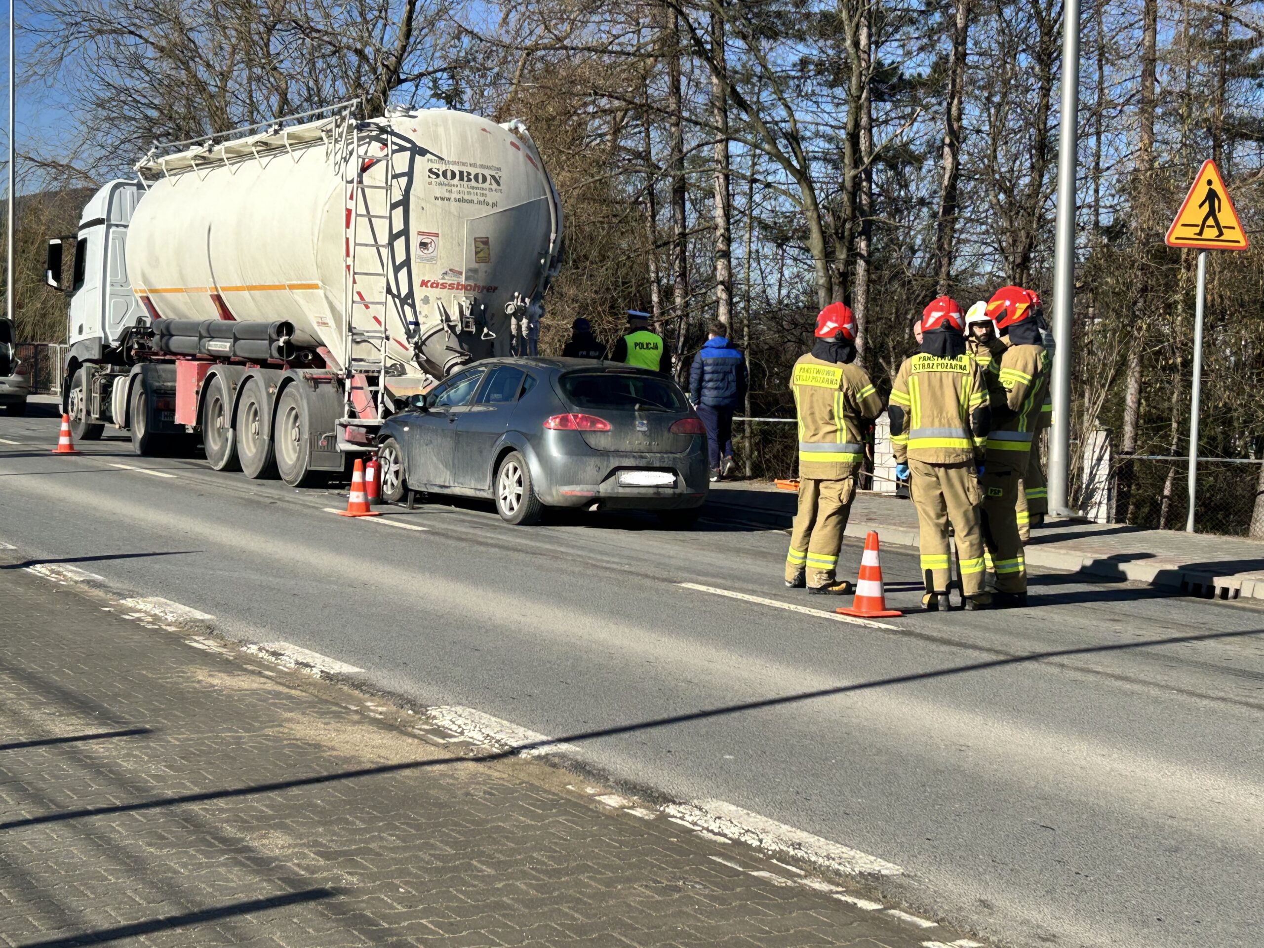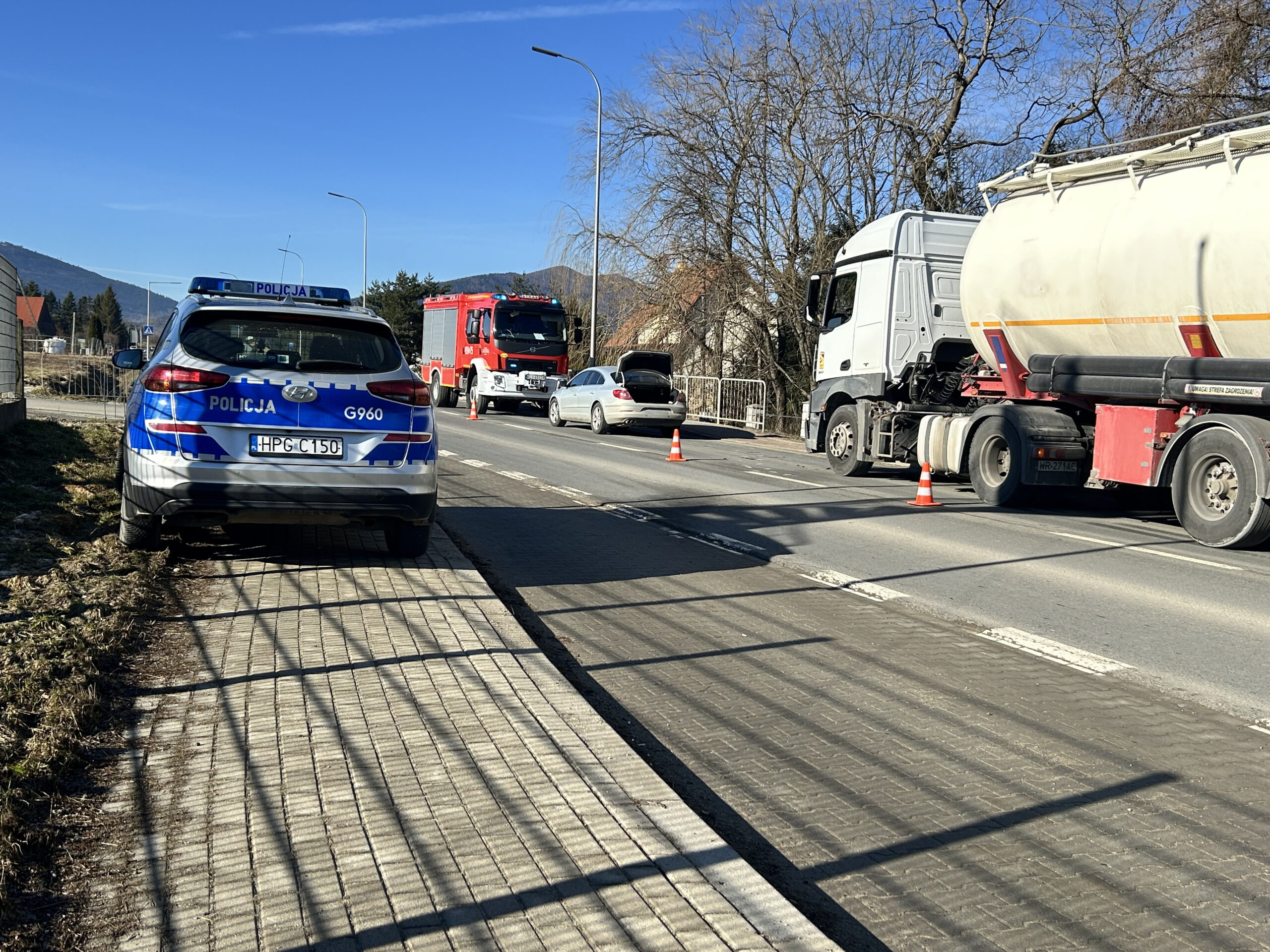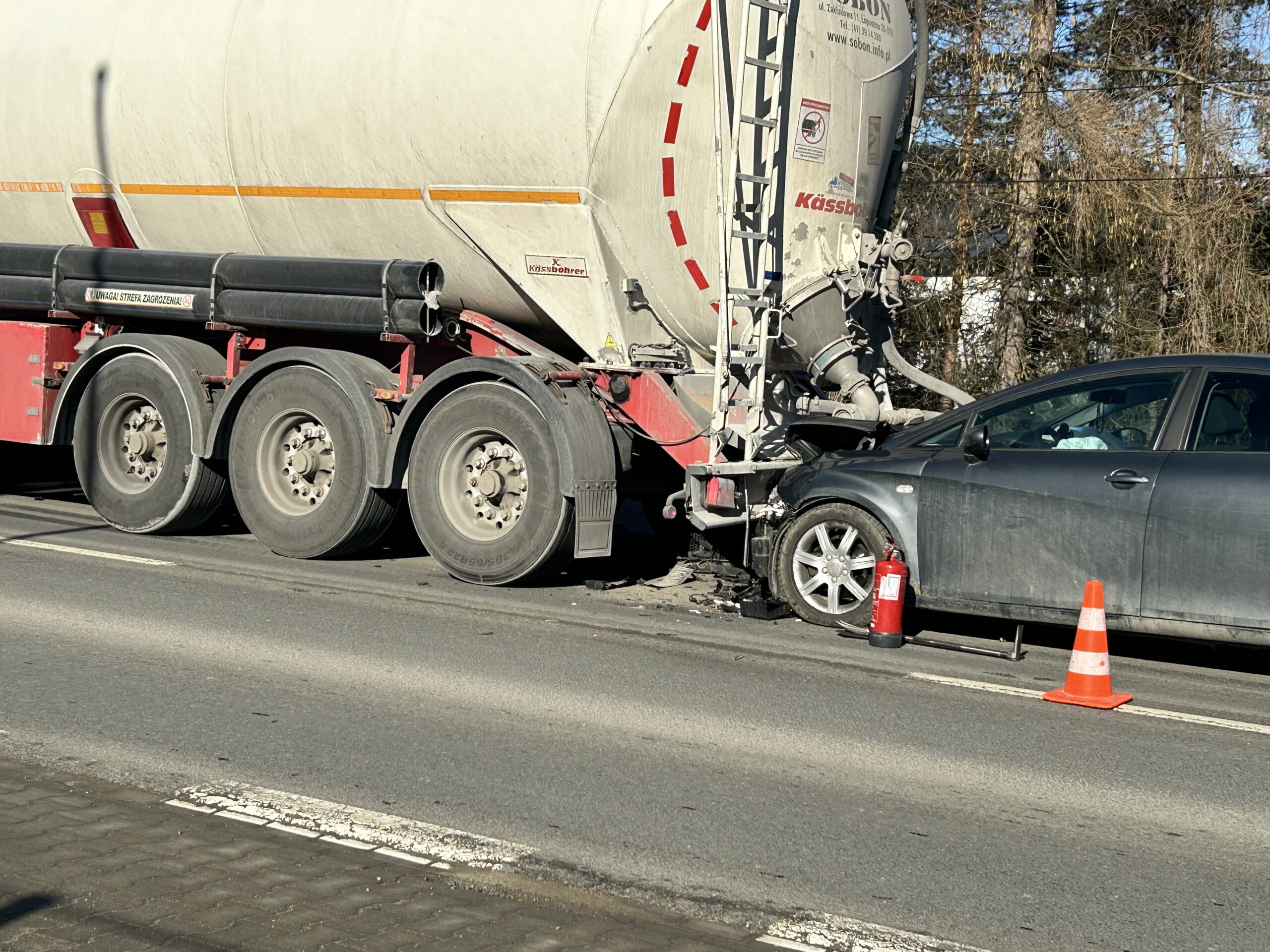 Kolizja, która miała miejsce na „krajówce”, to efekt nieuwagi jednego z kierujących. Kierujący samochodem ciężarowym najechał na tył poprzedzającego go pojazdu marki VW. Natomiast w ciężarówkę uderzył Seat. Nikt nie ucierpiał w wyniku stłuczki. Uczestnicy zdarzenia byli trzeźwi.
