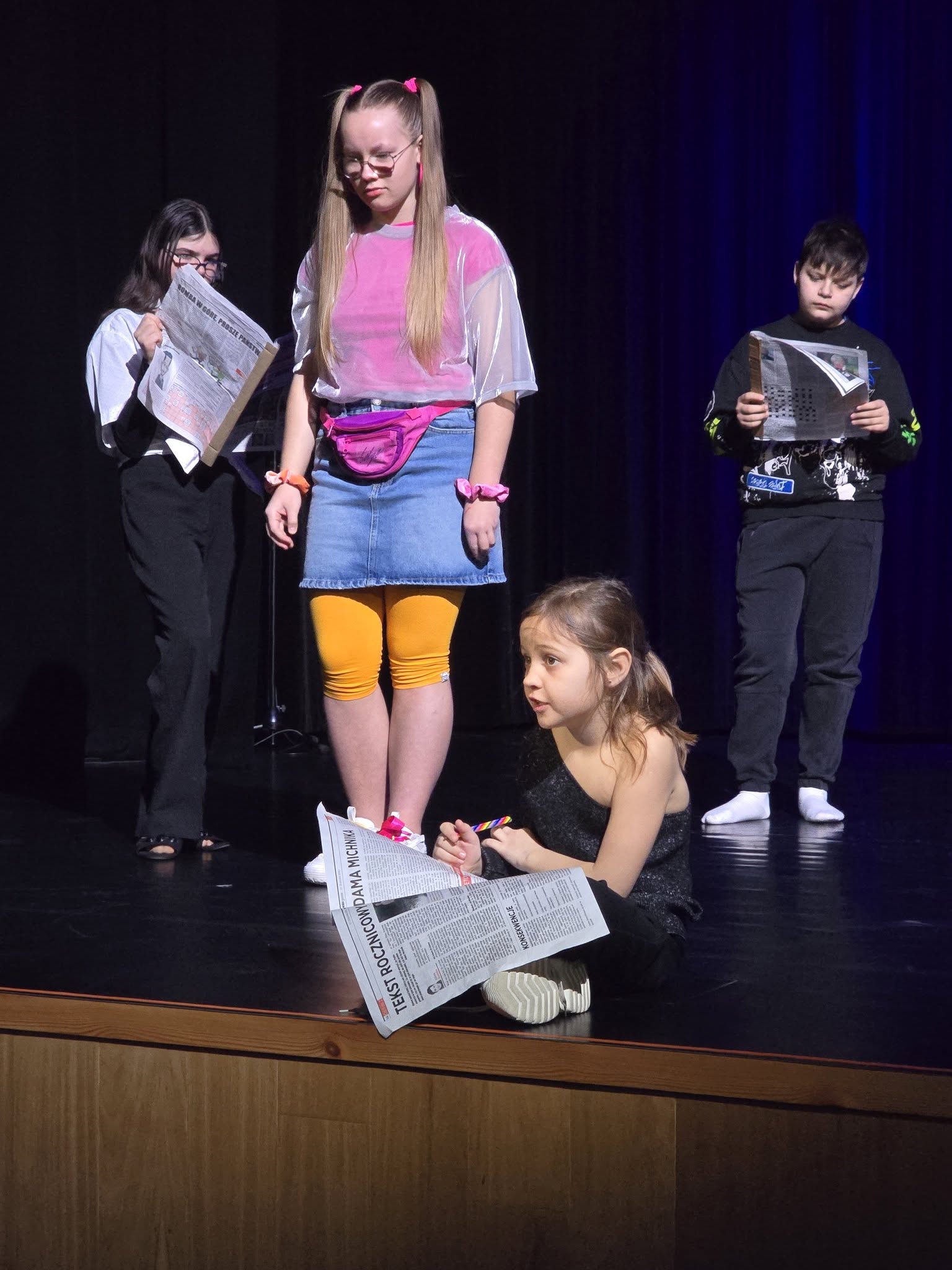 Mieliśmy okazję podpatrywać te zajęcia, nieraz zaglądając za kulisy teatralnej sceny, aby podpatrzyć, jak idą przygotowania, bo przedstawione spektakle teatralne, w dużej mierze zostały oparte o improwizację.