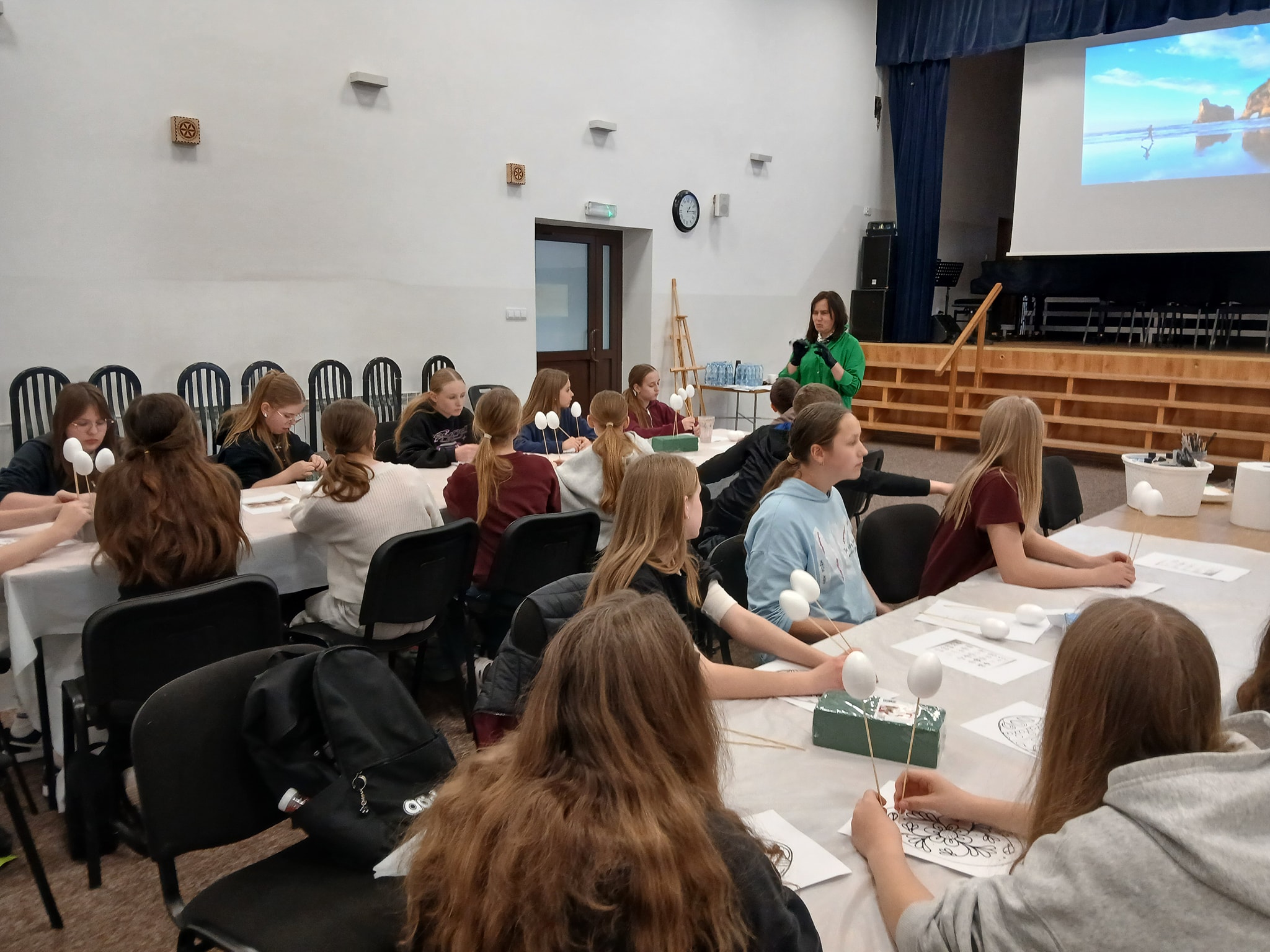 Młodzież ze Szkoły Podstawowej w Niedźwiedziu podczas zajęć poznali gwarę swojej miejscowości, tradycje wielkanocne, wzornictwo w zdobieniu pisanek, muzykę Zagórzan oraz lokalną historię. Warsztaty poprowadzili: Józefa Potaczek, Hubert Rapciak, Michał Wójcik oraz Łukasz Zapała.