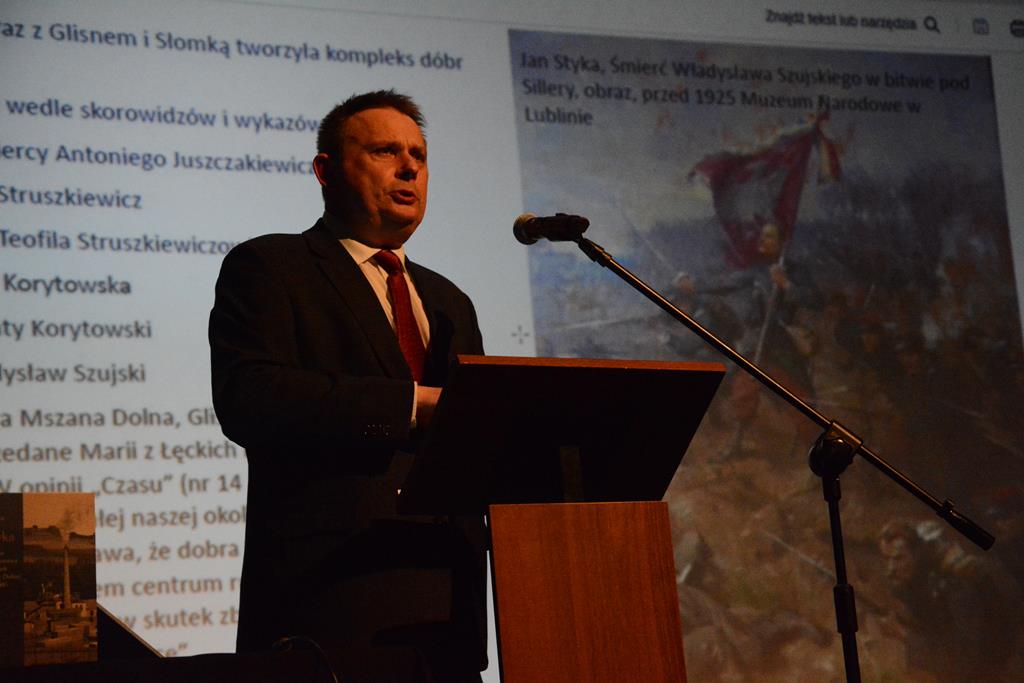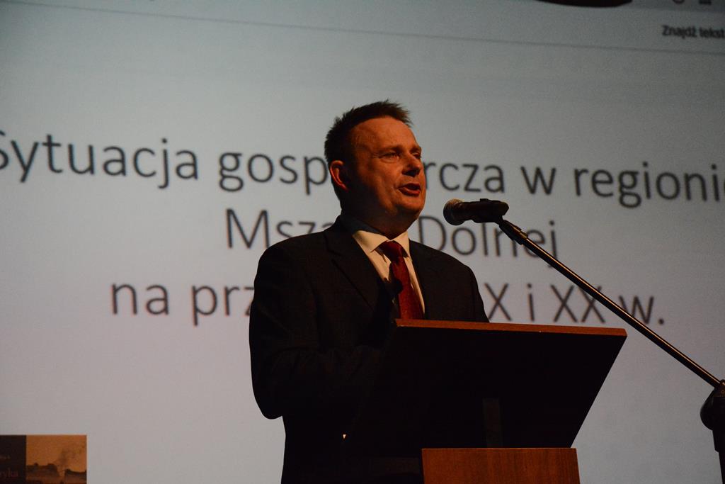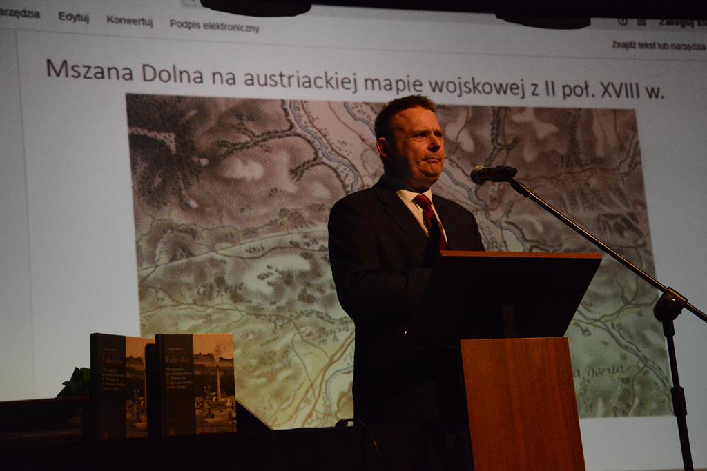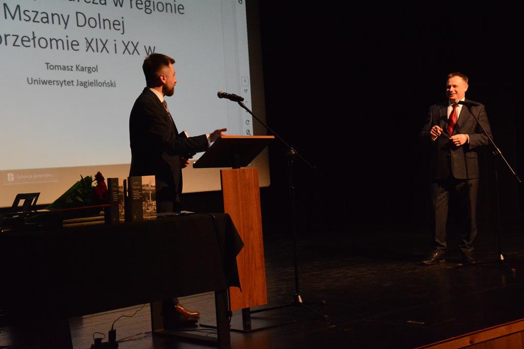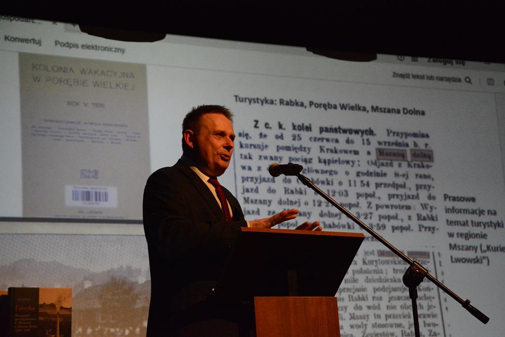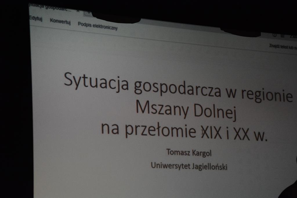 Wypowiedź autora została poprzedzona wykładem recenzenta monografii – prof. UJ dr. hab. Tomasza Kargola. Prelekcja przedstawiała sytuację gospodarczą w regionie Mszany Dolnej na przełomie XIX i XX wieku.