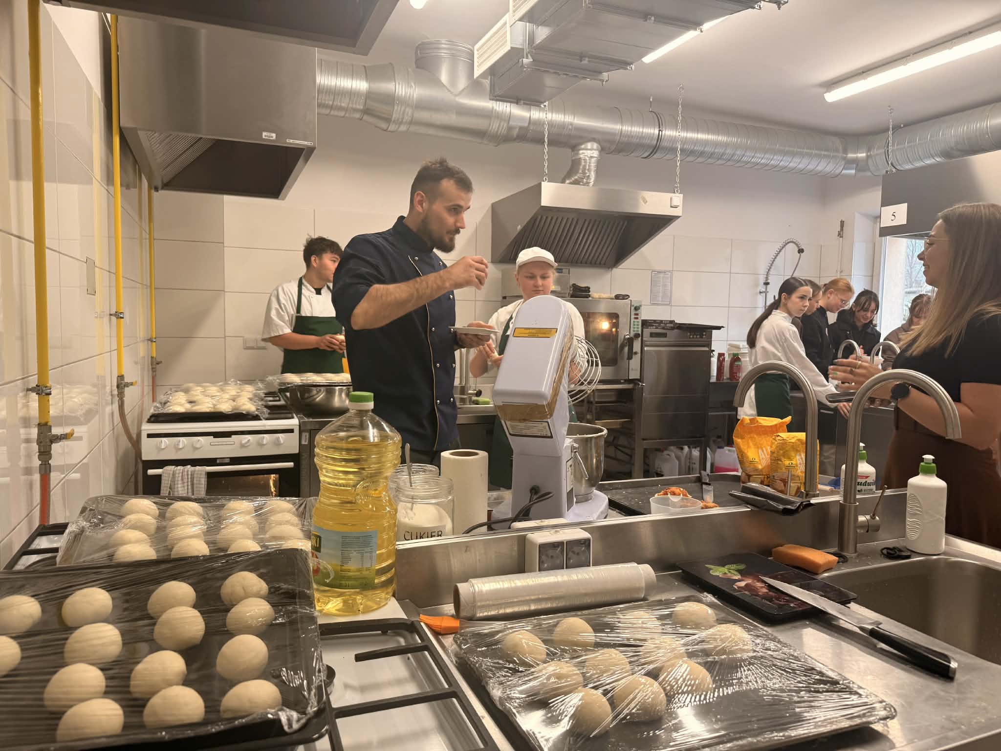 – Uczestnicy zostali podzieleni na grupy i wyruszyli na dwugodzinną wycieczkę po szkole, prowadzoną przez uczniów starszych klas. Była to doskonała okazja, aby z pierwszej ręki dowiedzieć się, jak wygląda nauka oraz życie w naszej placówce. Podczas zwiedzania goście mieli możliwość poznania różnych profili kształcenia. W sali logistycznej odbyła się prezentacja zawodu, a także pokaz praktycznych umiejętności. W specjalnie przygotowanym pokoju hotelarskim uczniowie zaprezentowali pracę recepcji oraz sztukę składania serwetek. Nie zabrakło również prezentacji zawodu technika ekonomisty, gdzie można było spróbować swoich sił między innymi w obsłudze kasy fiskalnej. Ósmoklasiści mogli sprawdzić swoją wiedzę przed egzaminem z języka polskiego, rozwiązując zadania związane z lekturami w pracowni polonistycznej, a także wziąć udział w logicznych zagadkach przygotowanych w sali matematycznej. W sali językowej czekały gry i zabawy, które pozwalały sprawdzić m.in. znajomość krajów anglo- i niemieckojęzycznych. Goście poznali również „życie szkoły od kuchni” – działalność wolontariatu, samorządu uczniowskiego oraz ofertę zajęć sportowych w naszej sali gimnastycznej. Dużym zainteresowaniem cieszyła się strefa „Kuchnie świata”, gdzie uczniowie kierunku technik żywienia zaprezentowali swoje umiejętności w praktyce. Na żywo można było zobaczyć, jak przygotować sushi, a także spróbować pysznych monoporcji i panna cotty. Każdy uczestnik miał możliwość przygotowania własnej „pizzerinki” – zużyliśmy aż 16 kg mąki, 8 paczek drożdży, olej, cukier i mnóstwo dodatków! Na zakończenie nie zabrakło pieczonej kiełbaski z grilla oraz orzeźwiających owocowych koktajli – podsumowuje mszańska szkoła ponadpodstawowa.