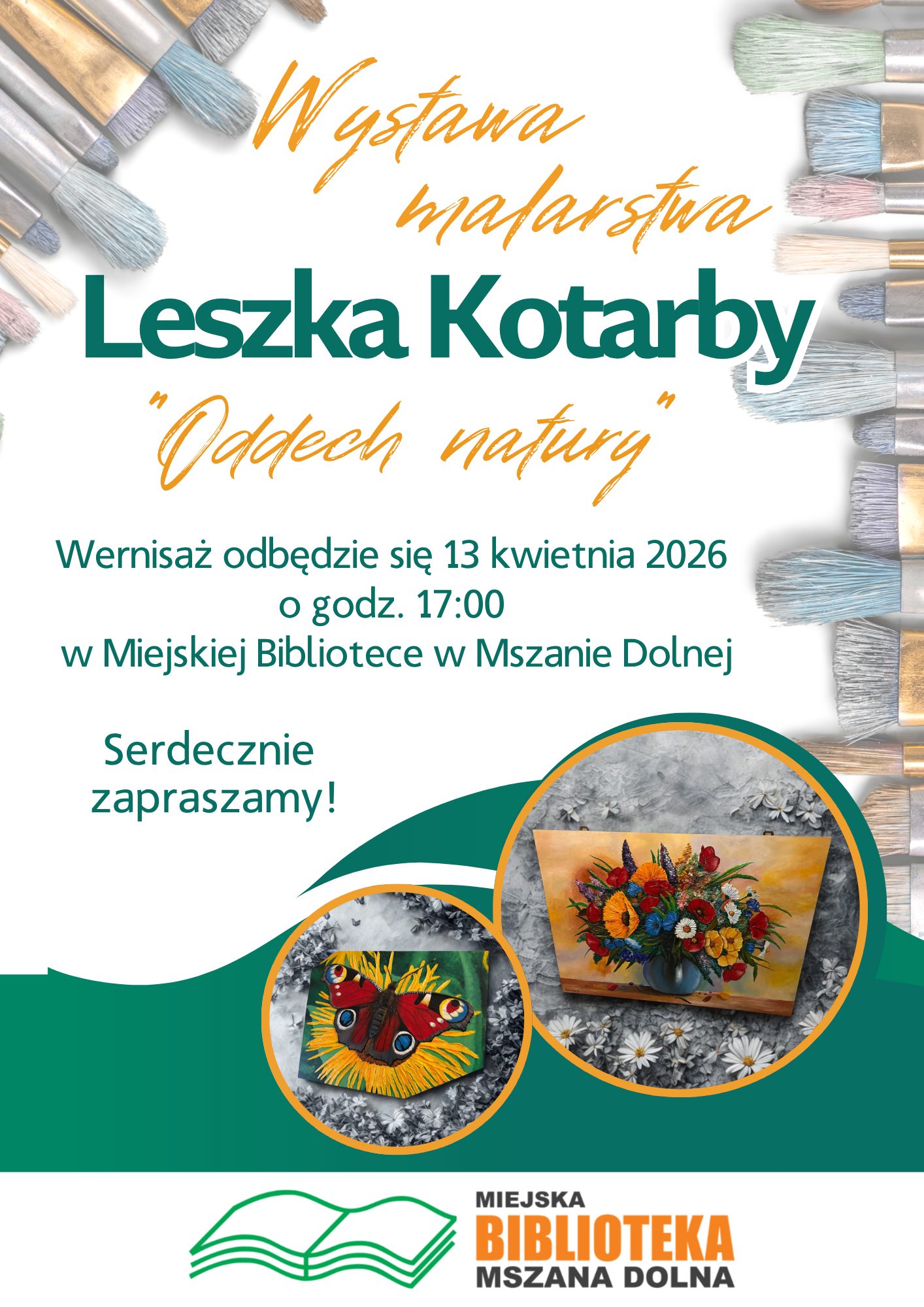 13 kwietnia (środa) o godz. 17. w Miejskiej Bibliotece Publicznej w Mszanie Dolnej odbędzie się wernisaż wystawy Leszka Kotarby „Oddech natury”.