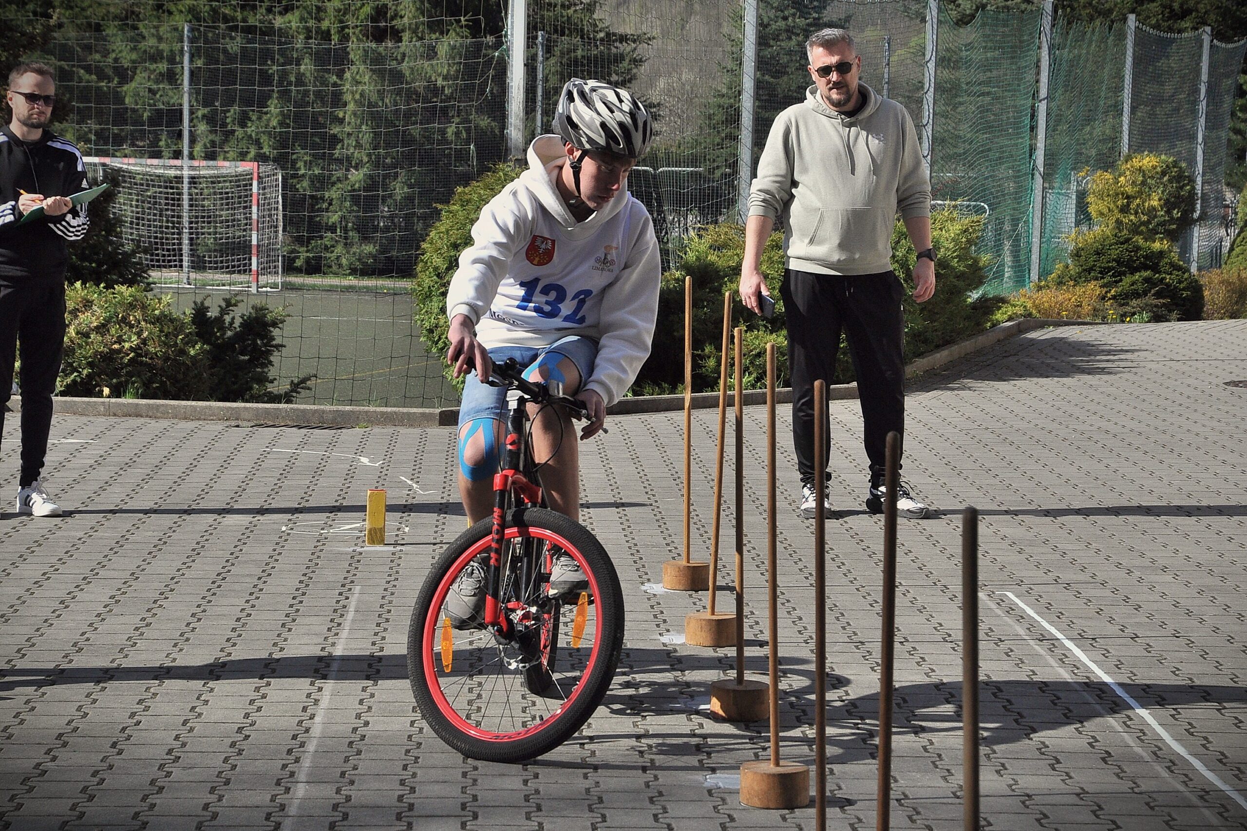 Uczniowie szkół podstawowych z terenu powiatu limanowskiego rozwiązywali test wiedzy dotyczący przepisów ruchu drogowego, jeździli rowerem po specjalnie przygotowanym torze przeszkód oraz udzielali pierwszej pomocy przedmedycznej.