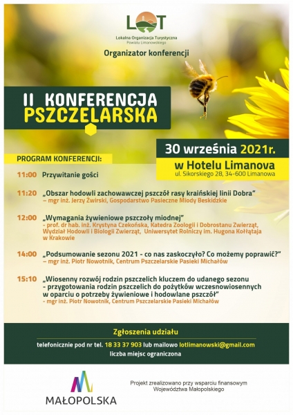 Lokalna Organizacja Turystyczna Powiatu Limanowskiego zaprasza na II Powiatową Konferencję Pszczelarską, która odbędzie się 30 września o godz. 11.00 w…