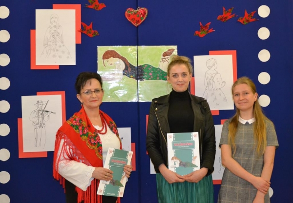 Rysunki Marii Szarek i Wojciecha Kalety, uwzględniające elementy stroju Zagórzan, i tekst Doroty Muchy, pisany gwarą, zawierający ciekawostki na temat…