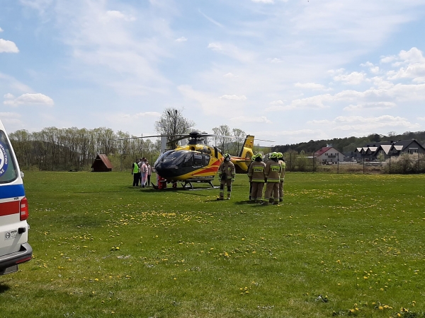 Ok. 10. w Sechnej (gm. Laskowa) doszło do nieszczęśliwego wypadku. Podczas prac polowych mężczyznę przygniótł traktor. Pomocy poszkodowanemu udziela Lotnicze…