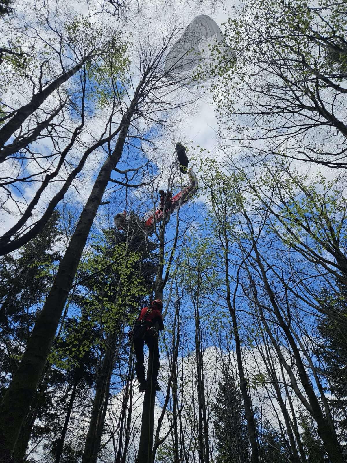 Szczęśliwy finał zdarzenia z udziałem paralotniarki, która niefortunnie wylądowała na drzewie. Dzięki pomocy strażaków kobieta cała i zdrowa została ściągnięta…