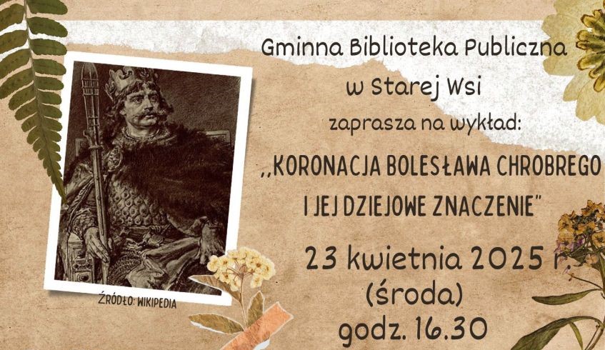 Biblioteka w Starej Wsi zaprasza na wykład profesora Mieczysława Rokosza zatytułowanego „Koronacja Bolesława Chrobrego i jej dziejowe znaczenie”. Wydarzenie odbędzie…