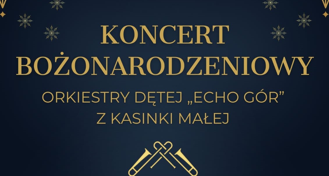 poniedziałek 09:46, 29 grudnia 2025 Wyświetleń: 1 246Orkiestra Dęta „Echo Gór” zaprasza na koncert bożonarodzeniowy 3 stycznia w kościele parafialnym w Kasince Małej odbędzie się koncert bożonarodzeniowy orkiestry „Echo Gór”. Rozpoczęcie o godz. 18.30. źródło:…